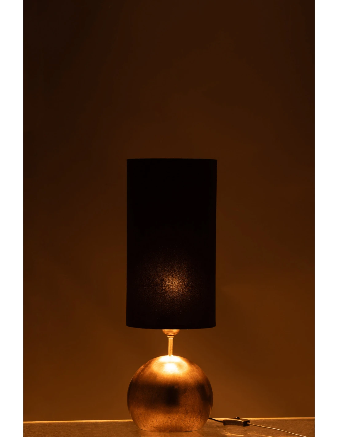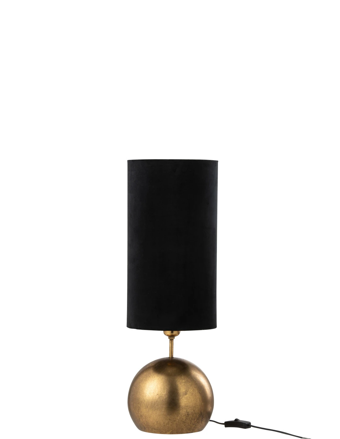 Lampe Boule Fer/Velours Or/Noir, Largeur: 20.5, Hauteur: 58, Longueur: 20.5, Poids: 1.15 kg, Collection: Hiver 2024, Couleur: Or, Composition Matérielle: Pièces électriques(20%), fer(60%), tissu(10%), PVC(10%), Montage requis: Oui.