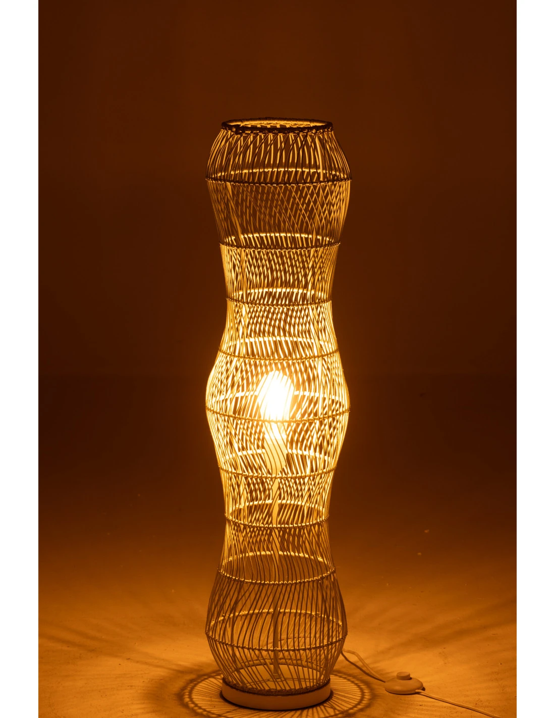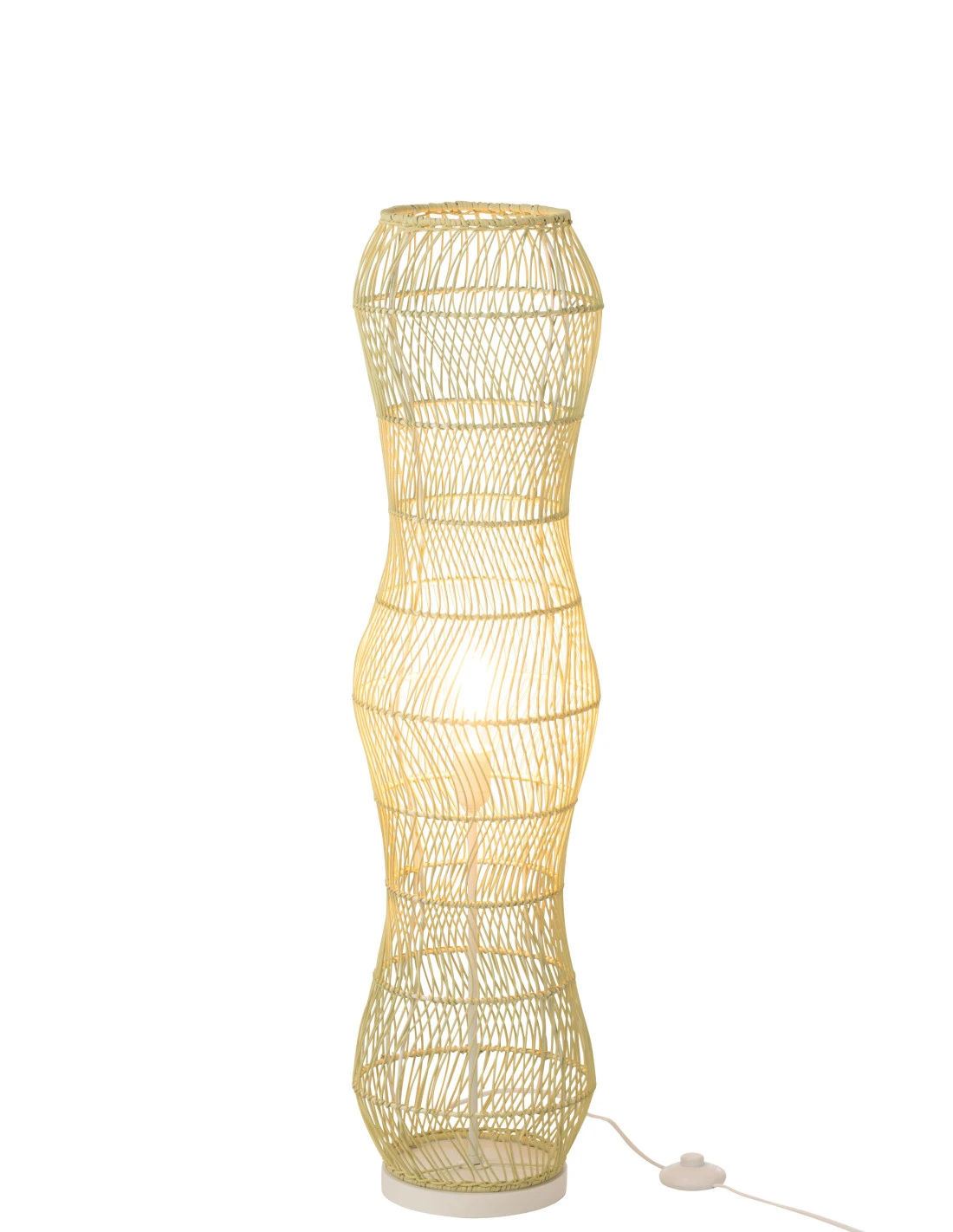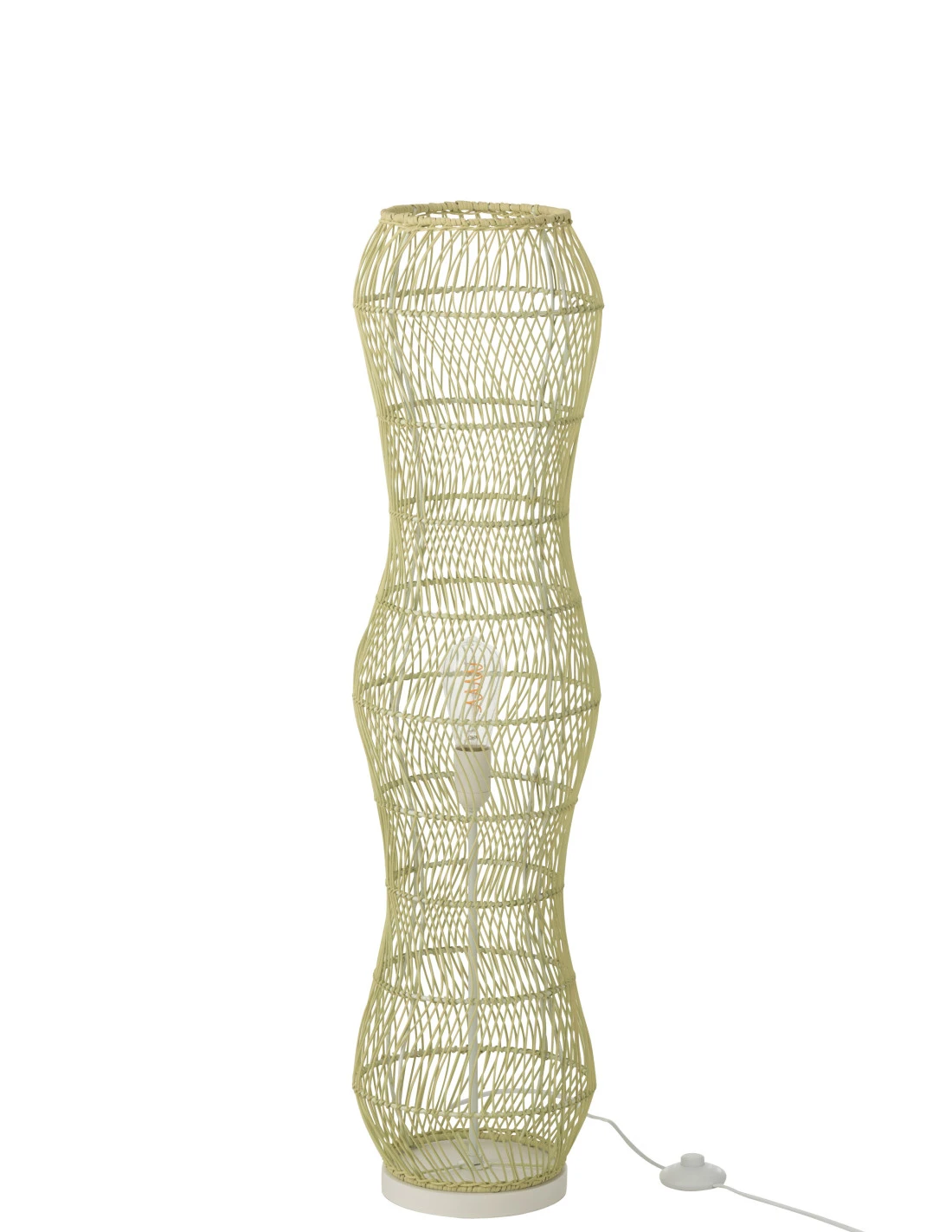 Lampe sur pied en métal tressé en rotin vert avec une largeur de 25 cm, une hauteur de 99,5 cm et une longueur de 25 cm. Collection Zomer 2025. Couleur verte. Composition : métal (62 %), rotin (22 %), bois de hêtre (16 %). Montage requis. Douille E27. Puissance maximale de 40,0 watts.