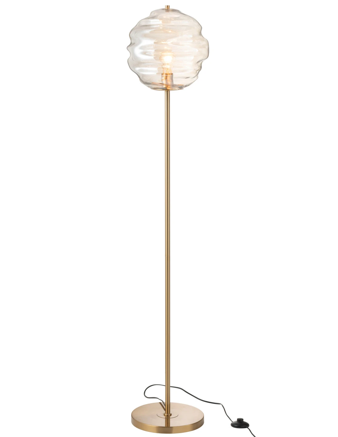 Lampe de sol en verre en forme de nid d’abeille, couleur cognac.