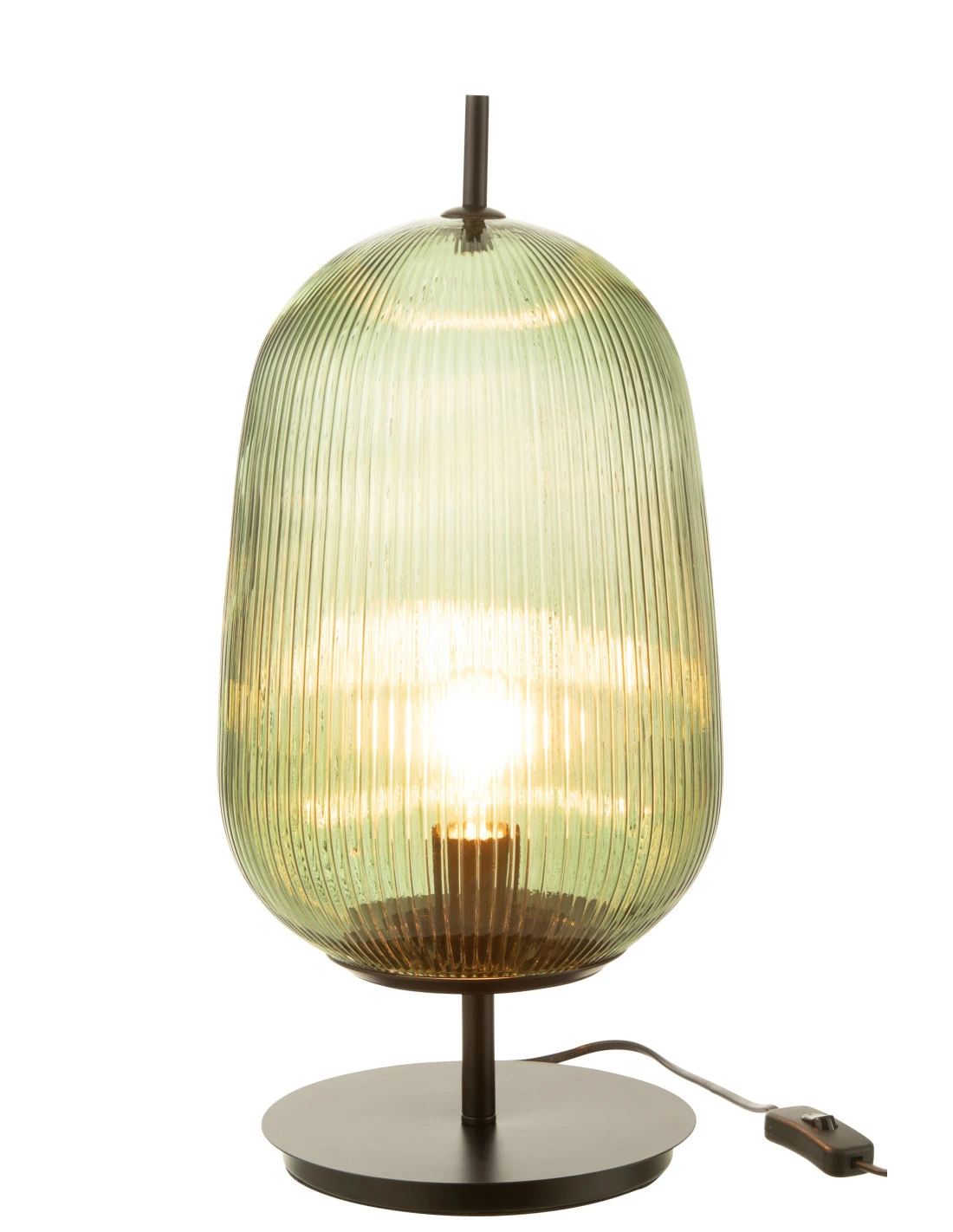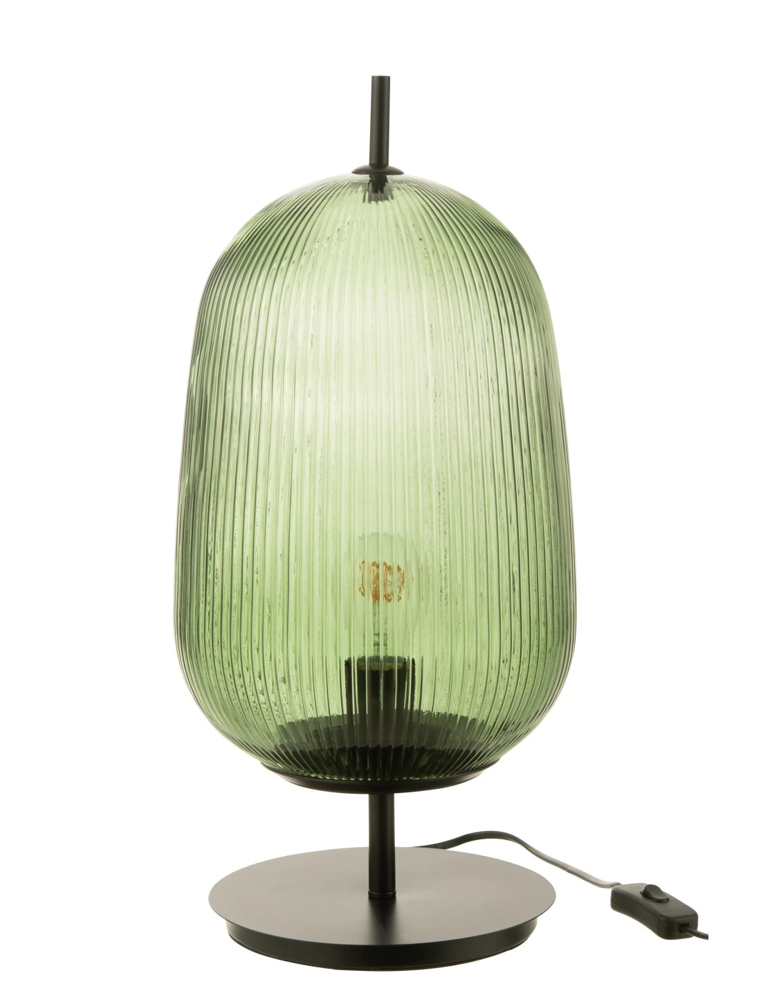 Lampe de table Oasis en verre vert grand, Dimensions: Largeur 22, Hauteur 49, Longueur 22, Poids 3.37 kg, Collection Zomer 2023, Couleur Vert, Composition en matériaux Fer(30%), Verre(70%), Montage requis Oui, Douille E27, Puissance maximale 40.0, Longueur du câble 2.2.