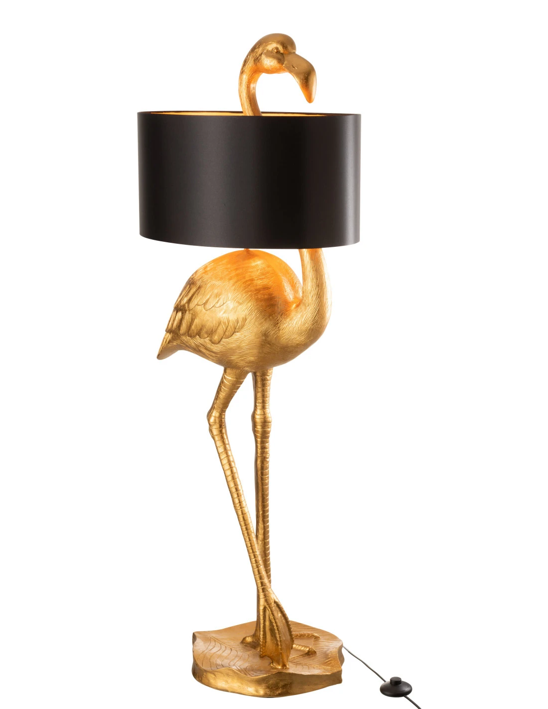 Lampe Flamant Poly Or/Noir, largeur 41, hauteur 139, longueur 55, poids 13 kg, collection Zomer 2021, couleur noir, couleur Or, composition matérielle: durcisseur(1%), accélérateur(3%), polyrésine(50%), carbonate de calcium(46%), montage nécessaire, douille E27, puissance maximale 60.0, longueur du câble 280.0.