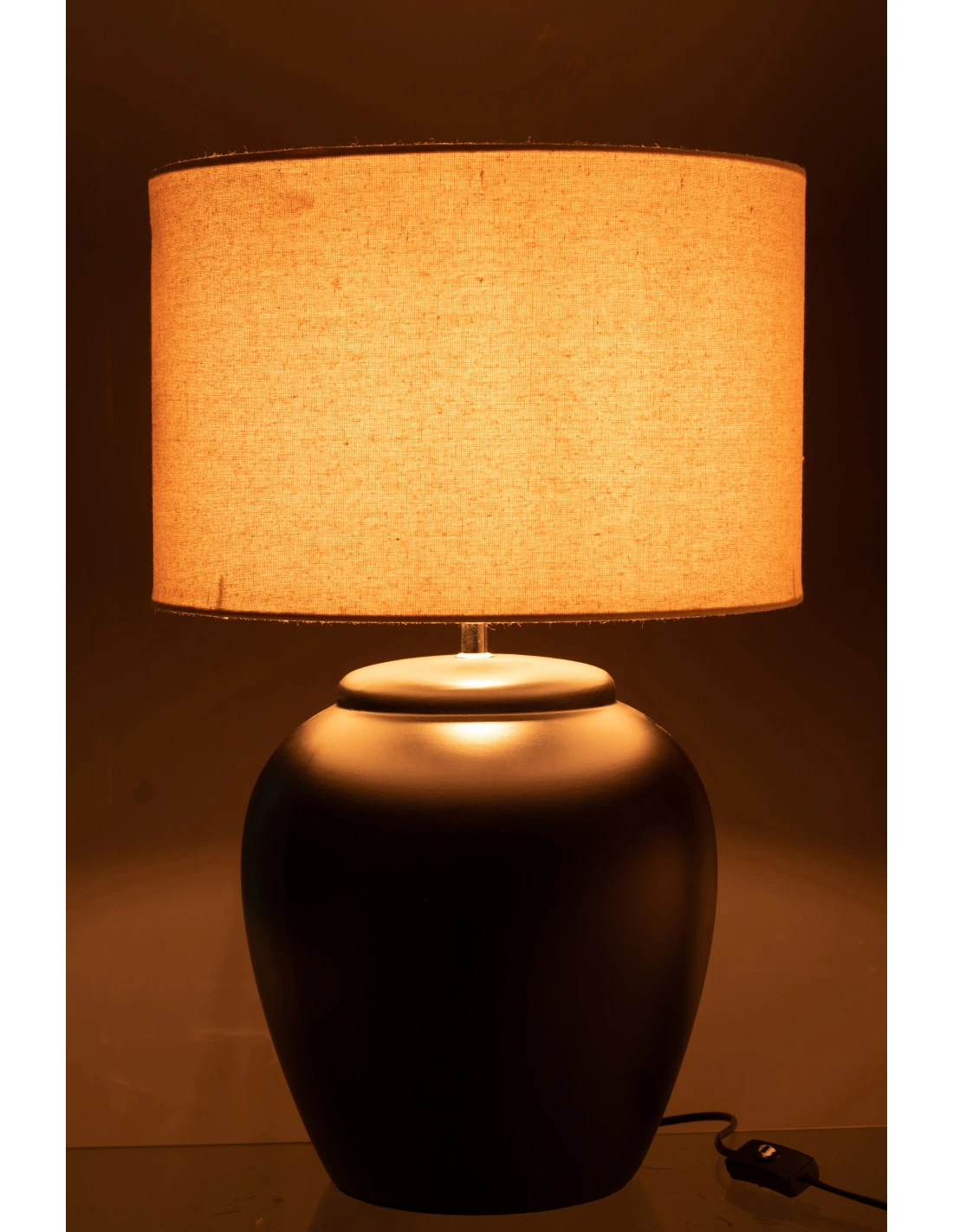 Lampe Meli + Abat-jour en céramique lin noir grand