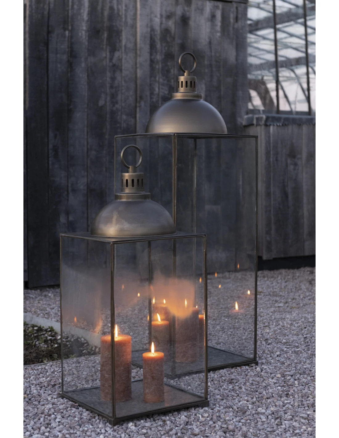 Lanterne Hagrid En Verre/fer Bronze L