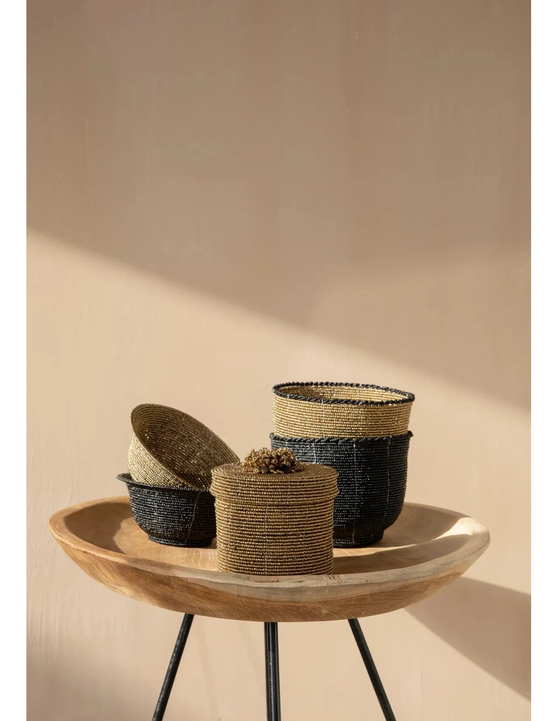 Tomber amoureux de notre délicate corbeille à perles faite à la main, elle embellira chaque coin de la maison, que ce soit dans une chambre, une salle de bains, un dressing ou un salon. Ou placez-les simplement sur une étagère comme un bel objet décoratif boho chic. Ces paniers vous permettent de ranger facilement des articles de toilette, du maquillage ou de petits objets dans n’importe quelle pièce. Un véritable accroche-regard pour votr’intérieur ! Couleur: Noir. Dimensions (cm) : H10 x L13 x l13. Matériaux : Perles.