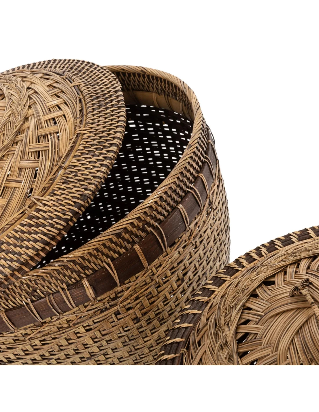 Ces paniers en rotin faits à la main avec soin ajoutent une touche d’élégance classique. Disponibles en deux tailles pour répondre à vos besoins de rangement, ils apportent à la fois style et fonctionnalité à votre espace intérieur. Les accents marron foncé et les motifs détaillés en font une magnifique pièce de design pratique !