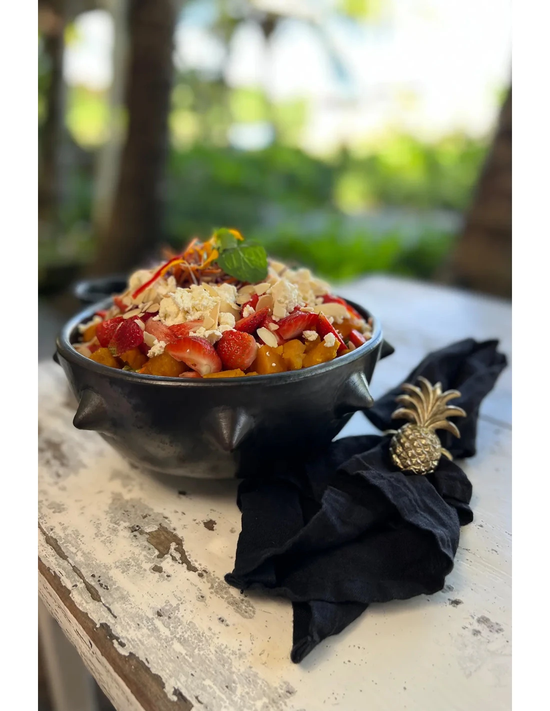 Ajoutez une touche de luxe à votre table avec ce porte serviette ananas en laiton massif! Lourd et orné, ce porte serviette est authentique. Il s’harmonise avec notre collection de couverts en laiton massif, comprenant diverses cuillères et fourchettes. Illuminez votre table pour vos invités!