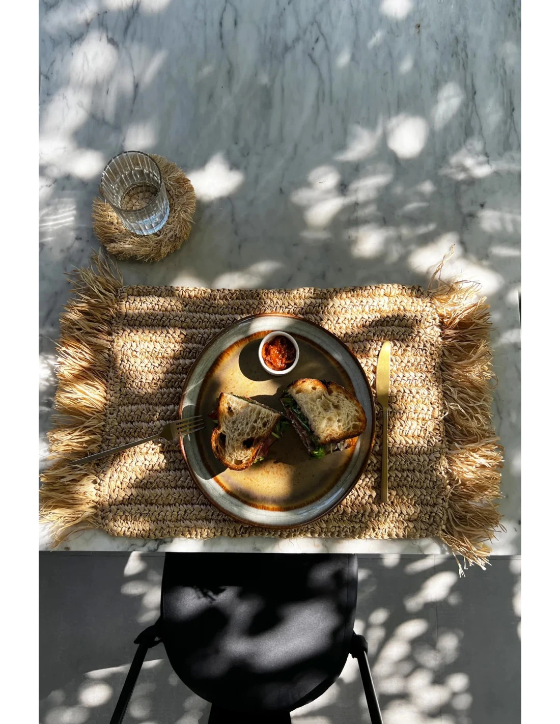 Cette magnifique nappe en raphia tissée à la main avec des franges ajoutera une touche bohème à votre table, s’intégrant parfaitement à divers styles d’intérieur et d’extérieur.