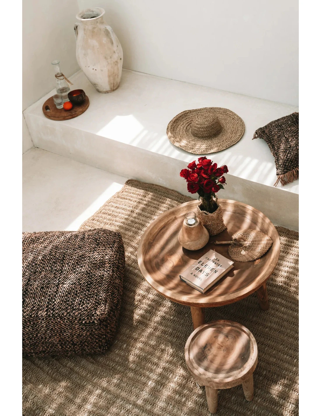 Notre tapis rectangulaire en jonc de mer, fabriqué en raphia, sisal et palmier, a une couleur naturelle et apporte texture et douceur à un sol dur. Résistant à l’usure naturel, idéal pour votre cuisine, salon ou terrasse couverte.