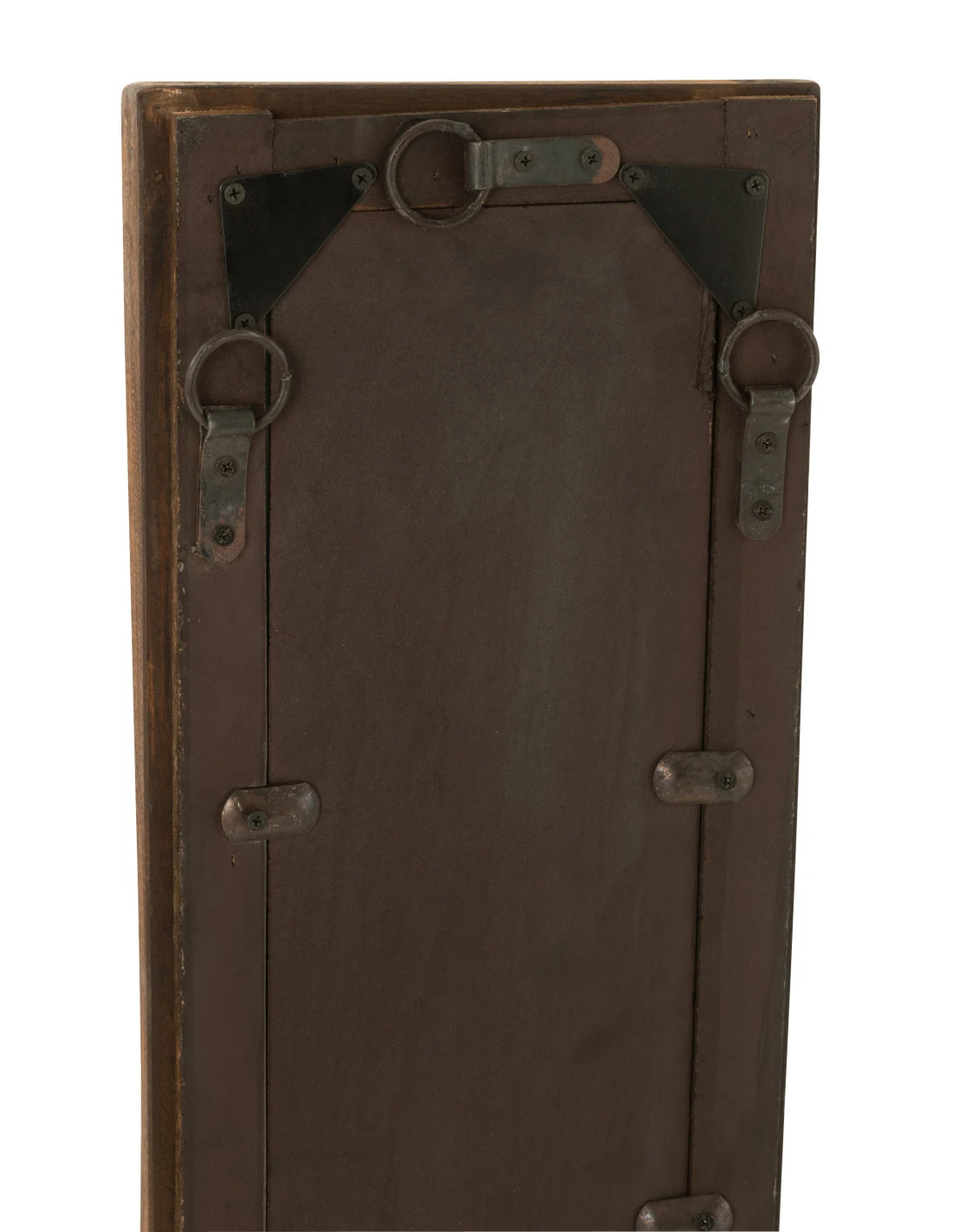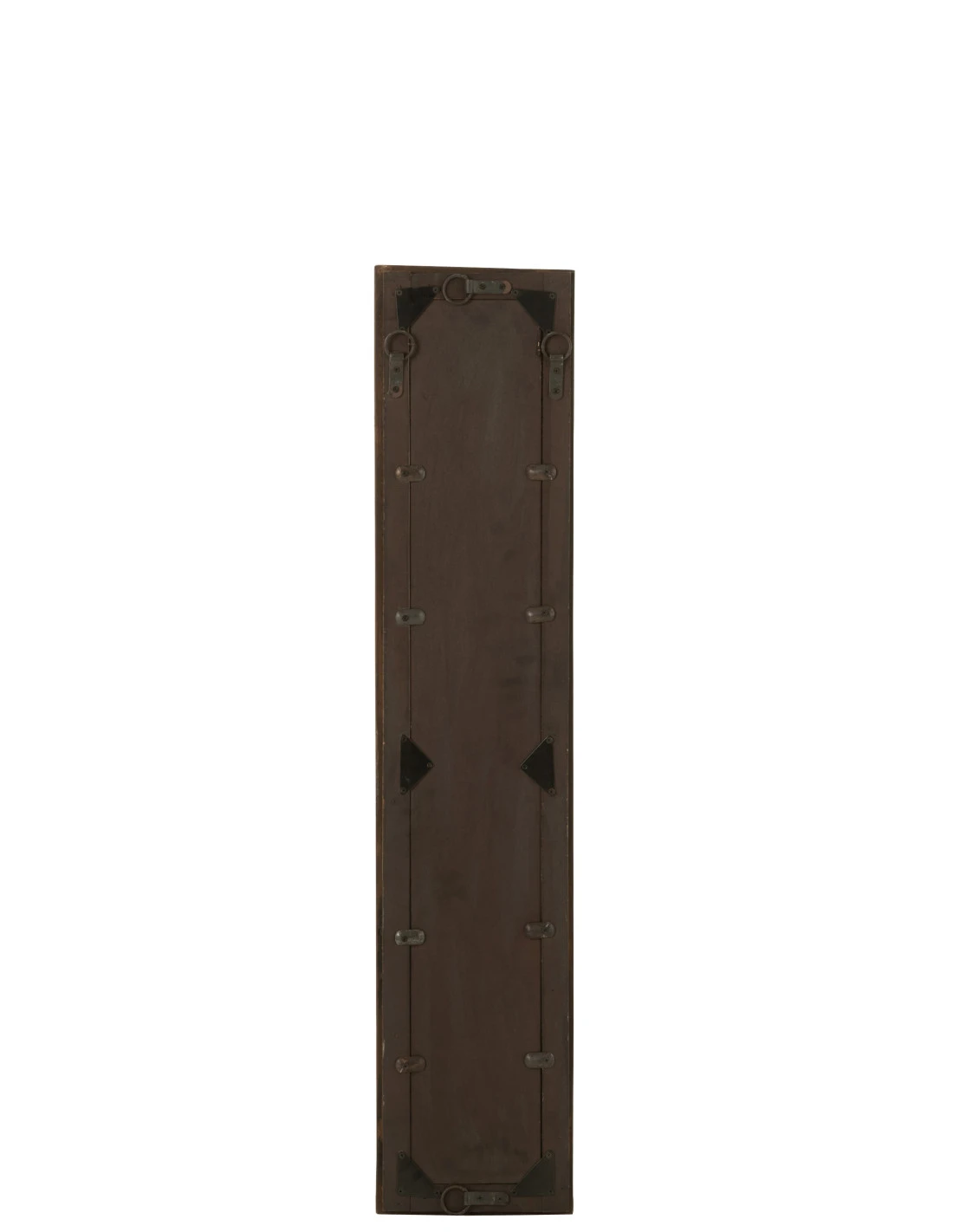 Miroir mural rectangle en bois brun petit. Dimensions: Largeur 24, Hauteur 5, Longueur 120, Poids 4.855 kg. Collection Zomer 2023. Couleur marron. Composition en MDF (35%), bois recyclé (30%), verre (35%).