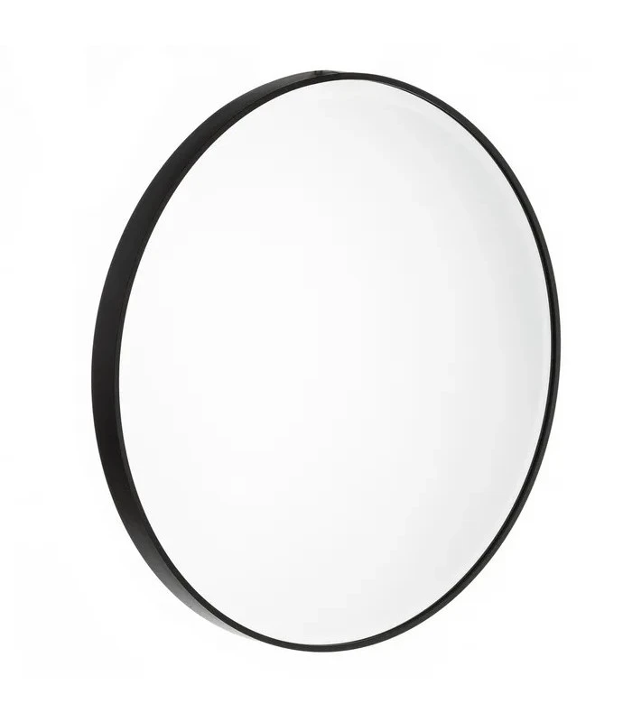 Miroir rond en aluminium noir.