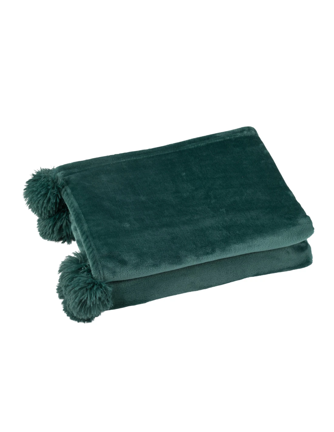 Plaid Pompon Polyester Vert Fonce