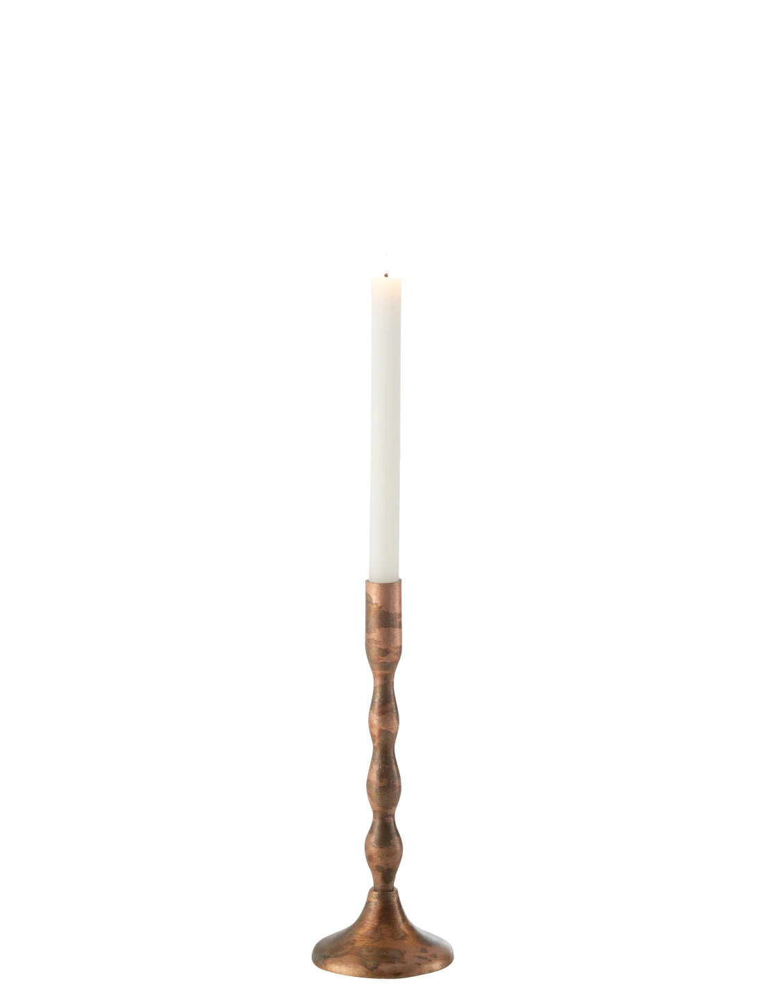 Porte-bougie en métal cuivre, petit : Larg. 10,5 cm, Haut. 27 cm, Long. 10,5 cm, Poids 0,385 kg, Collection Hiver 2024, Couleur Bronze, Composition en aluminium à 100%.