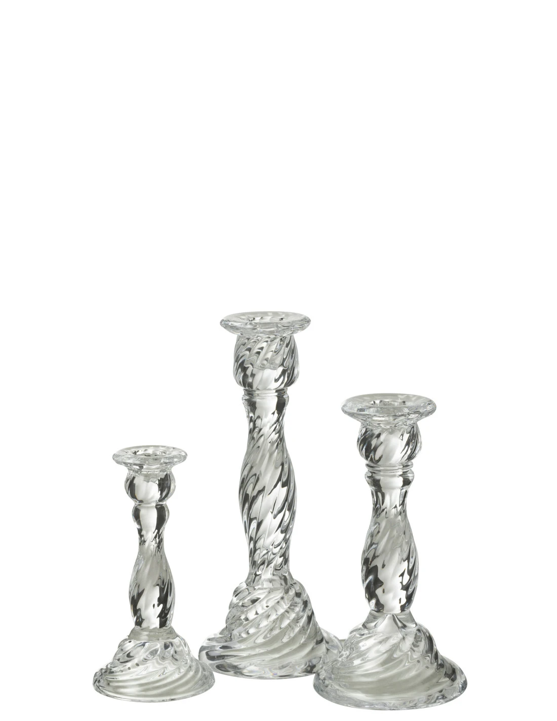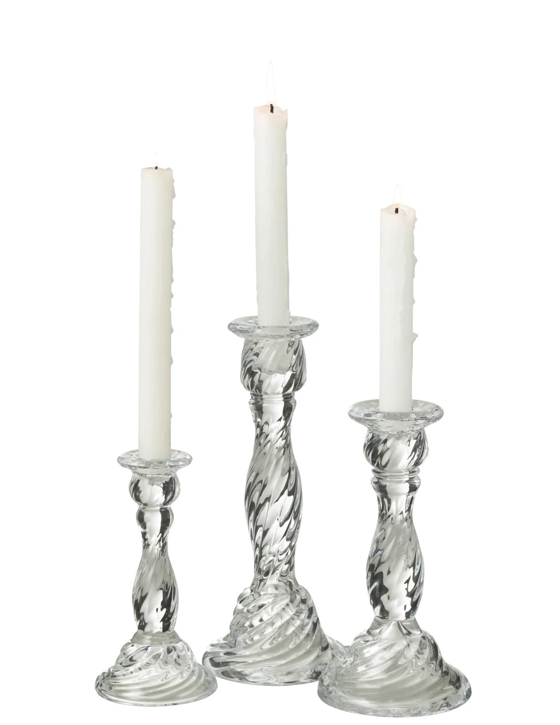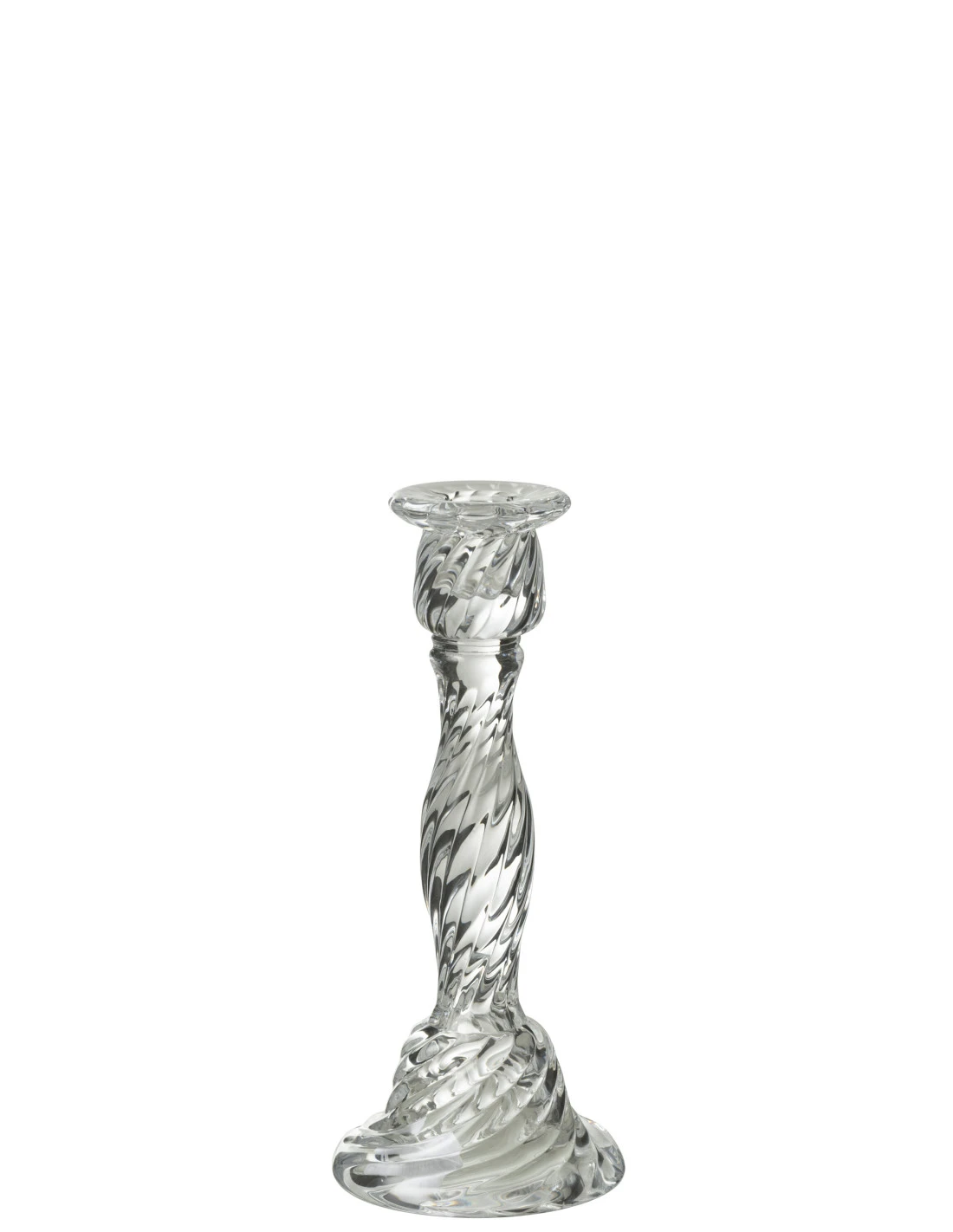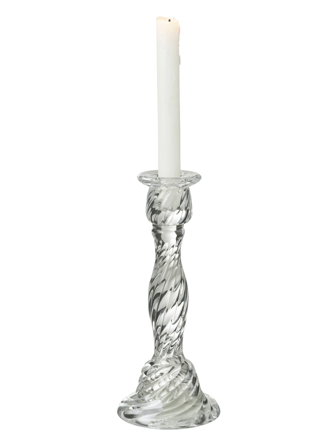Porte-bougie en verre transparent de grande taille.