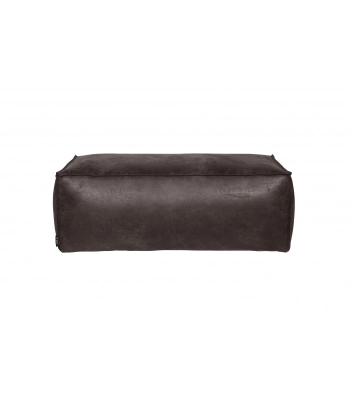 Moderne, frais et contemporain. Ce pouf, très large, dispose d’un cuir recyclé noir robuste. Les bords ont une couture cousue (bord rugueux). et se combine avec l’armature en métal et bois de hêtre.