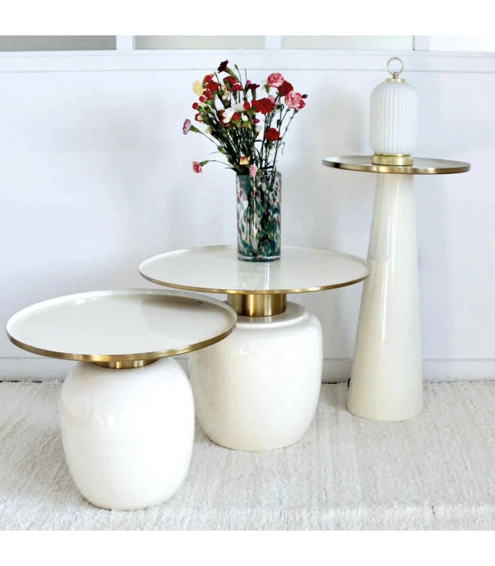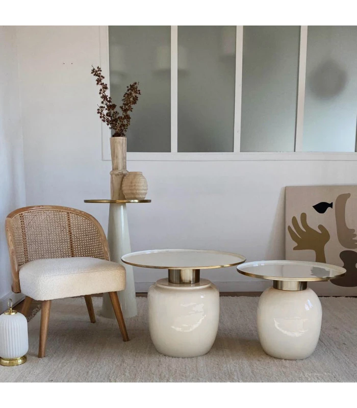 Sellette entièrement en métal au design minimaliste, finition écrue émaillée. Sa forme simple permettra à cette sellette de trouver parfaitement sa place dans votre intérieur.