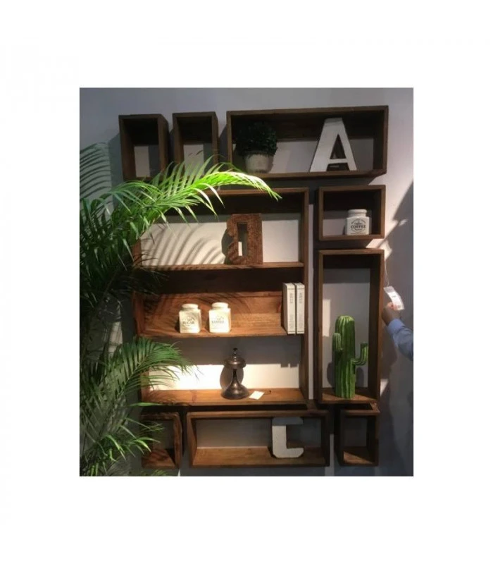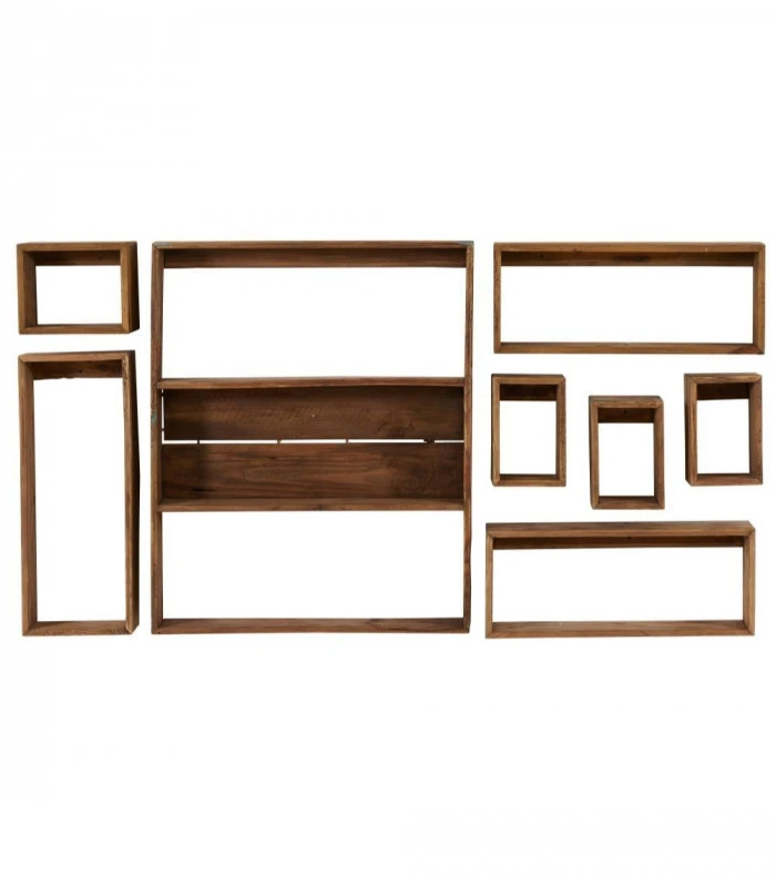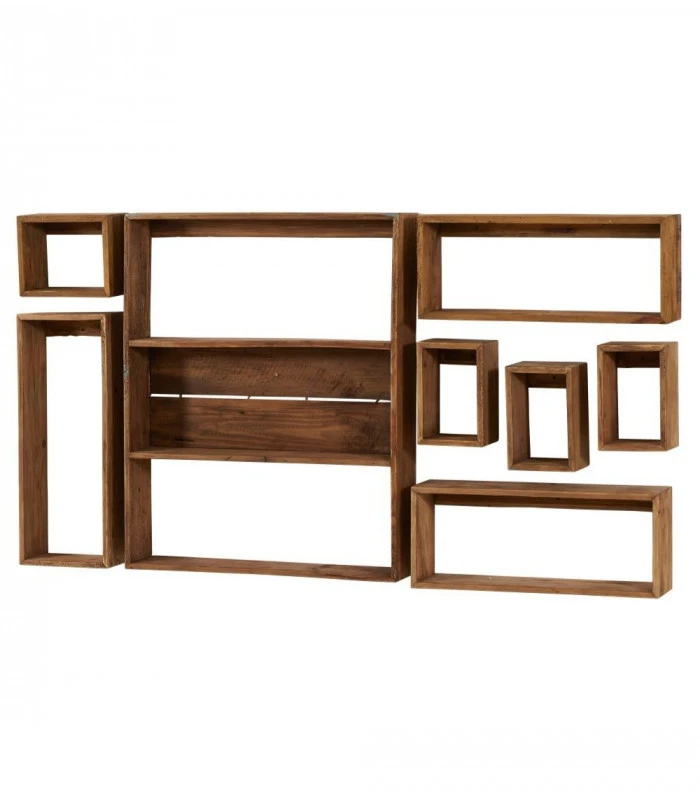 Composé de neuf éléments rectangulaires de dimensions différentes, le set d’étagères vous offrira un bel espace de rangement.