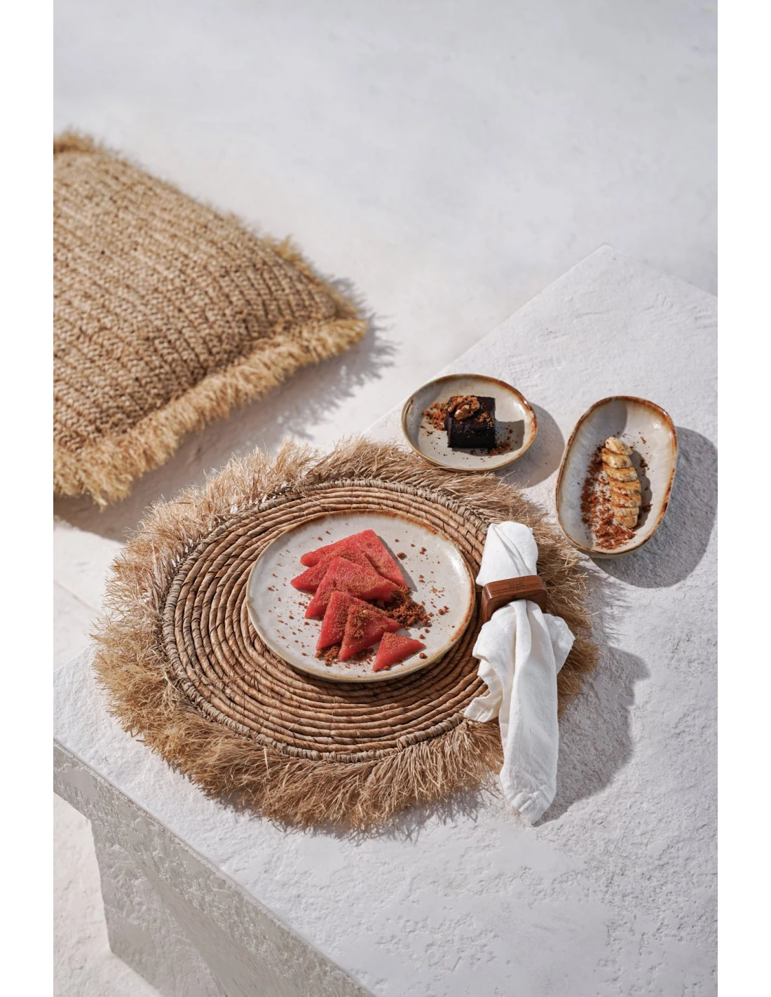 Ajoutez une touche tropicale à votre table avec ces sets de table en raphia et bananier. L’association de brun et beige dans des tons naturels apporte une ambiance chaleureuse à vos repas.