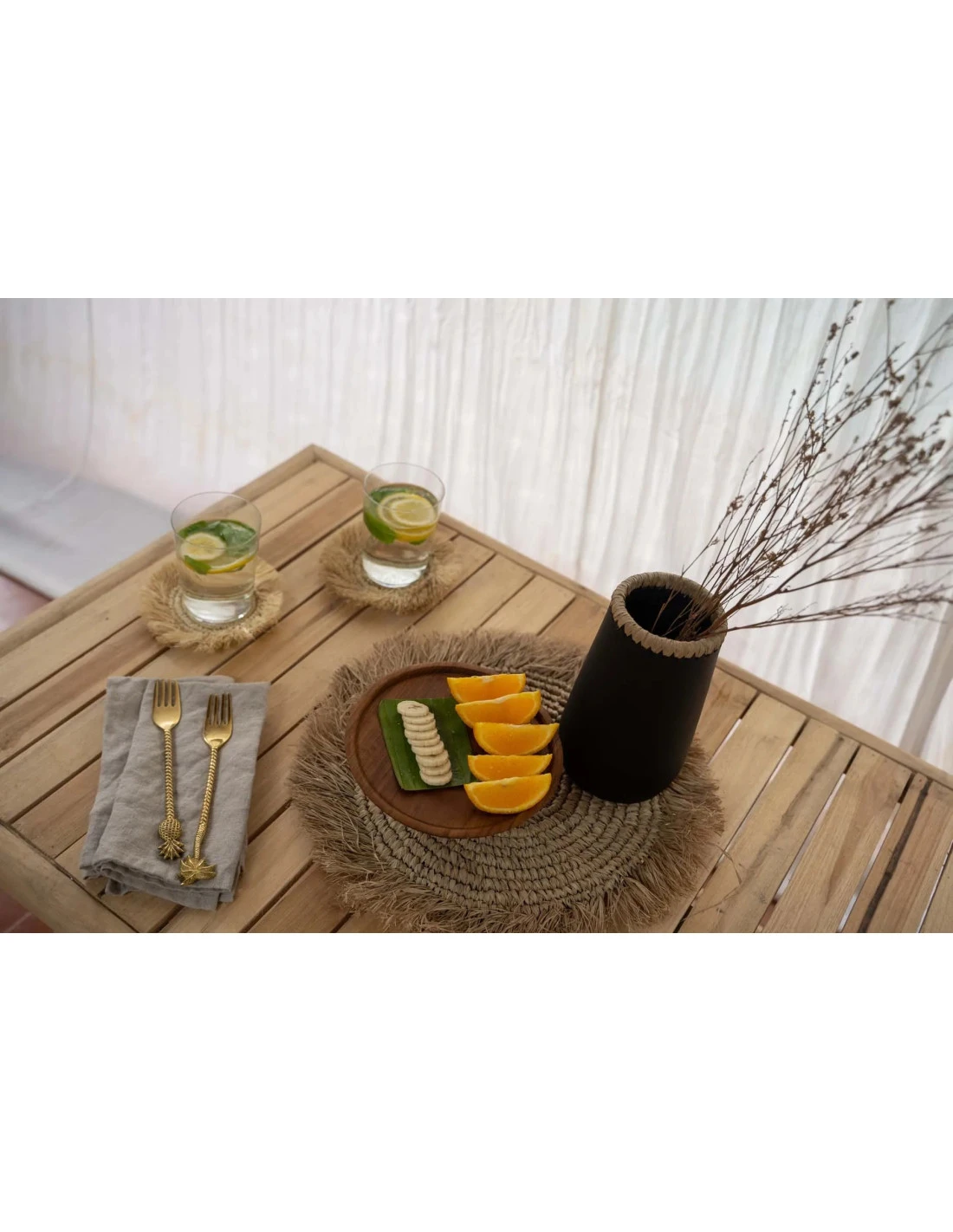 Ajoutez une touche tropicale à votre table avec ces sets de table en raphia et en herbe marine. L’association de teintes naturelles apporte instantanément de la convivialité à vos repas.