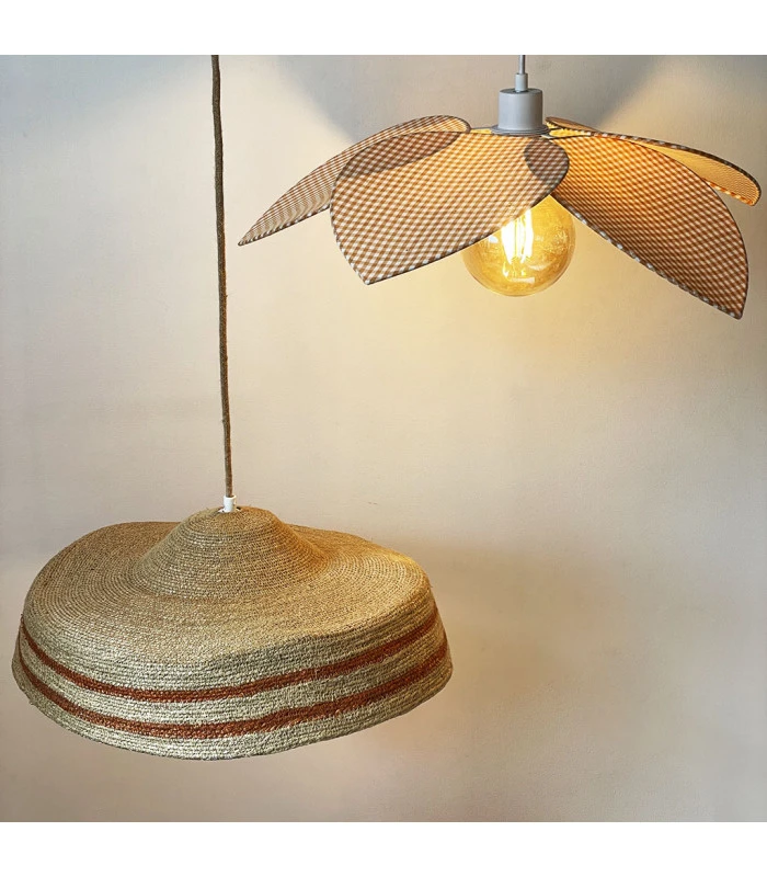 Suspension Fleur En Toile à Carreaux Beige