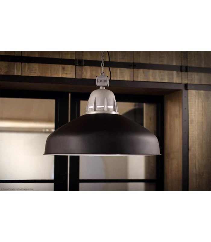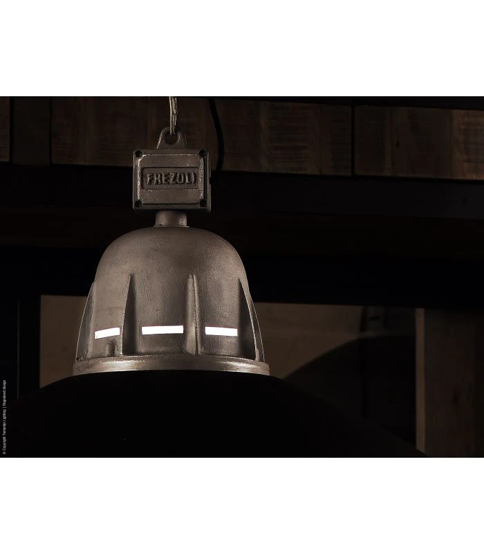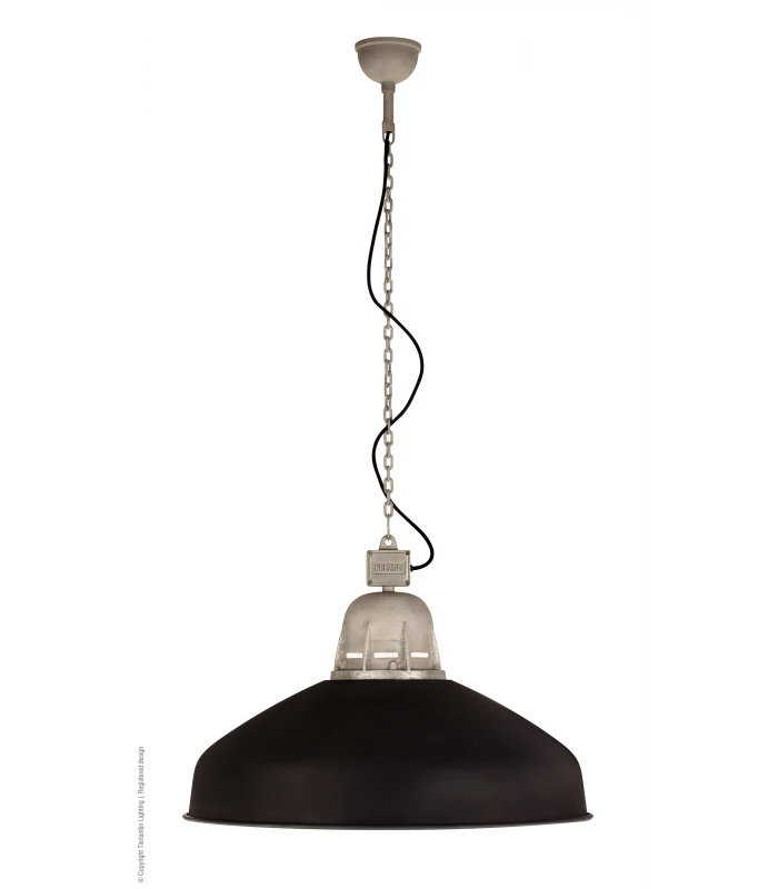 Lampe Suspendue XL en noir et gris, Ø68cm, qui se caractérise par une conception industrielle avec un univers robuste et rude.