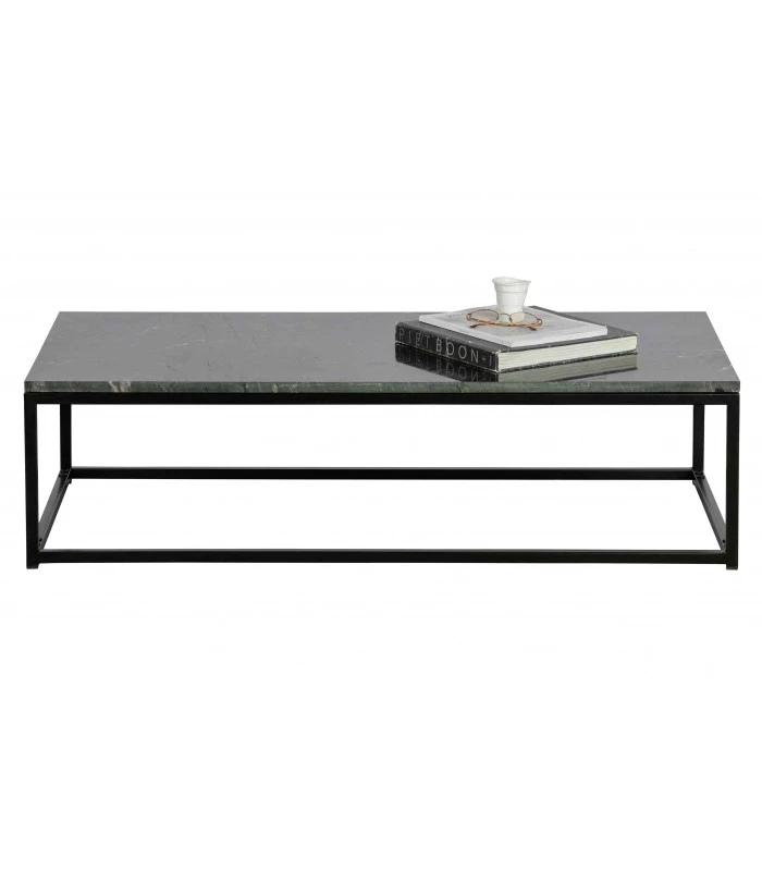 L’épaisseur du plateau est de 2 cm. Sous le plateau de la table se trouve un tapis de fibres, qui assure le renforcement et la flexibilité. Les pieds (hauteur 30 cm) et la base sont en fer avec une finition noire.