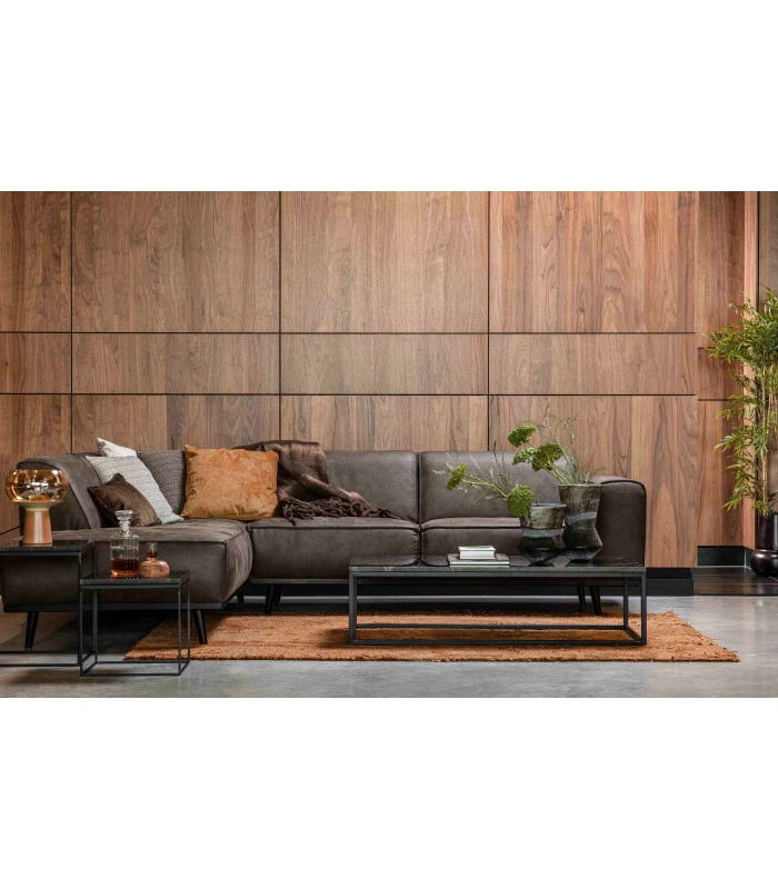 Table d’appoint moderne et luxueuse en marbre noir de Bidasar avec cadre en fer noir
