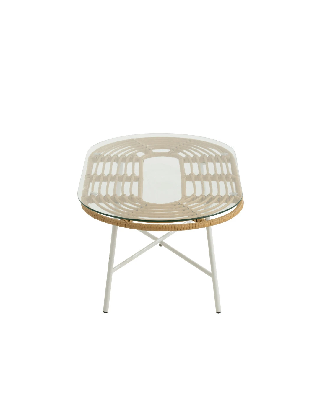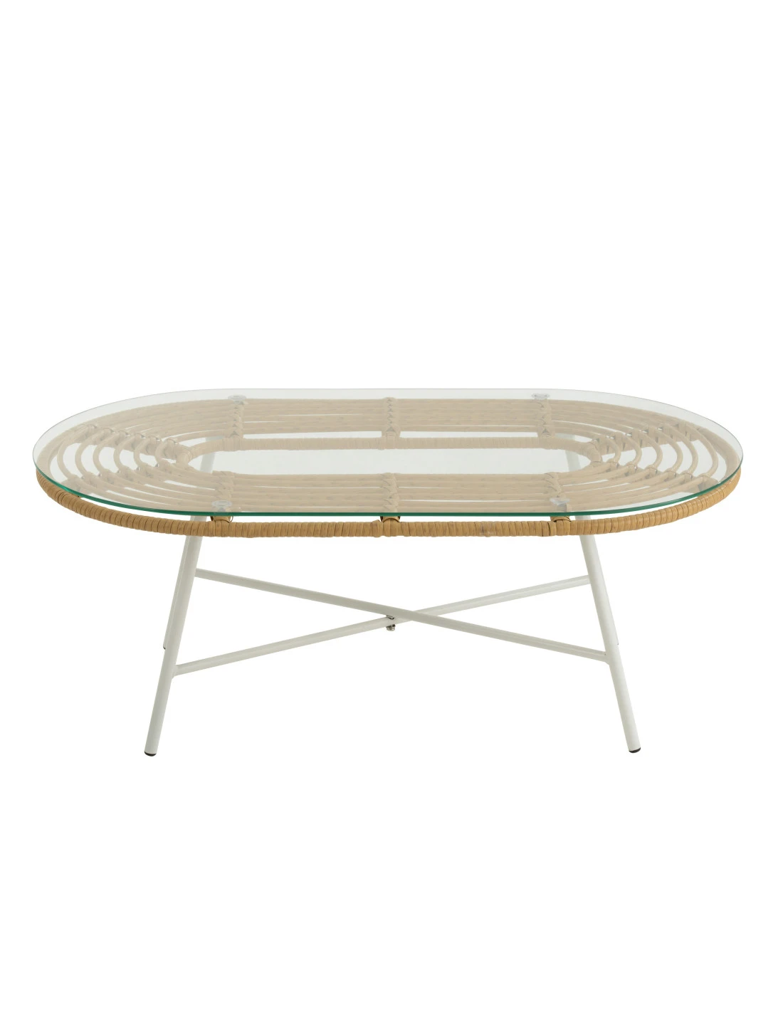 Table Basse Ovale Extérieure Métal/Verre Naturel/Blanc