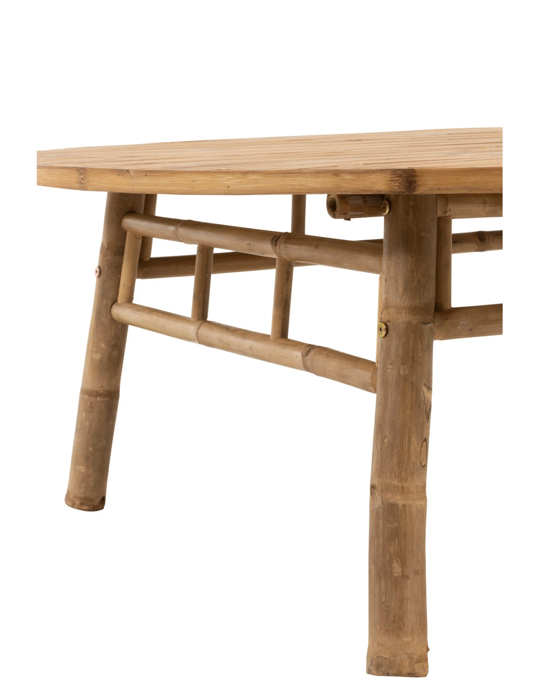 Table basse ronde en bambou naturel de collection Zomer 2019. Matériau principal : bambou (100%). Montage requis. Dimensions : largeur 120 cm, hauteur 46 cm, longueur 120 cm. Poids : 19 kg. Couleur naturelle.