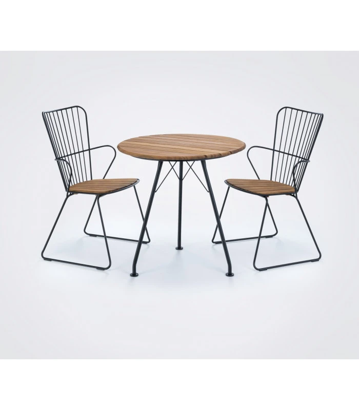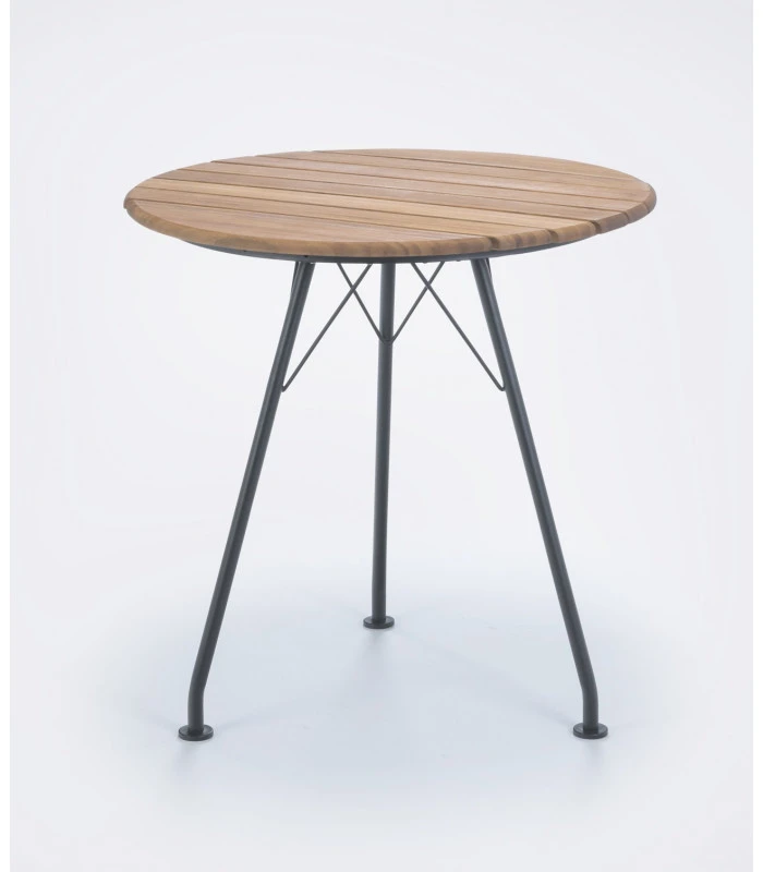 La table CIRCUM ronde composée de lamelles en bambou avec un plateau qui repose sur un piètement raffiné en acier laqué époxy. Une table outdoor pour prendre le café sur votre terrasse ou votre balcon.