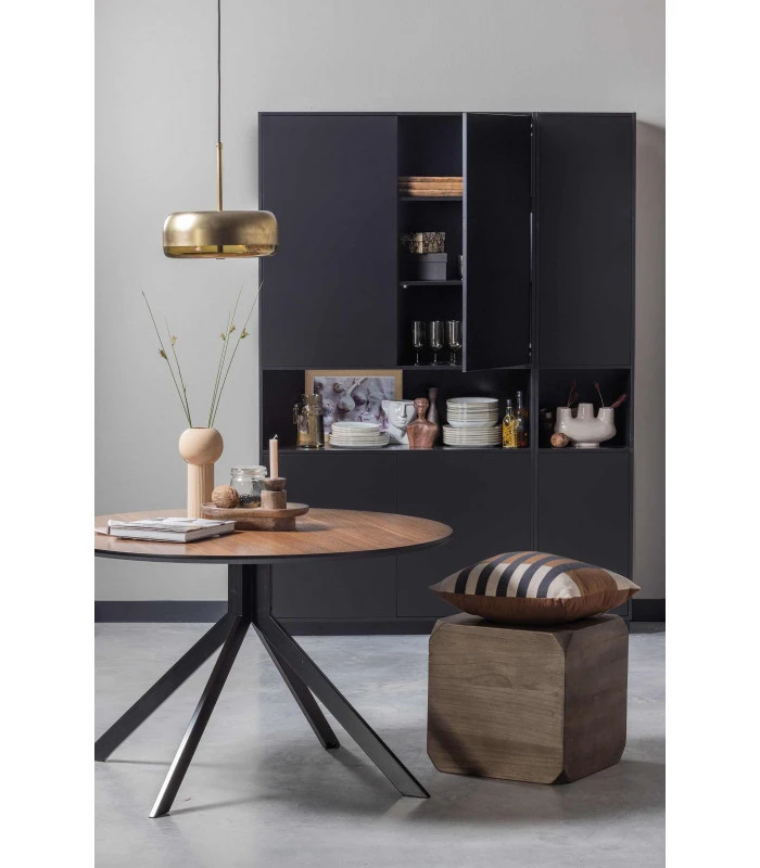 La table d’appoint Lio est fabriquée en bois de Paulownia, connu pour ses caractéristiques naturelles et son caractère robuste. Les nœuds, les fissures et le grain visible sont des éléments courants de ce bois. Le bois est recouvert d’une laque mate brun foncé, mais cela ne rend pas Lio résistant à l’eau ou aux taches. Lio a des coins arrondis de façon ludique, ce qui fait ressembler sa forme à celle d’un dé.