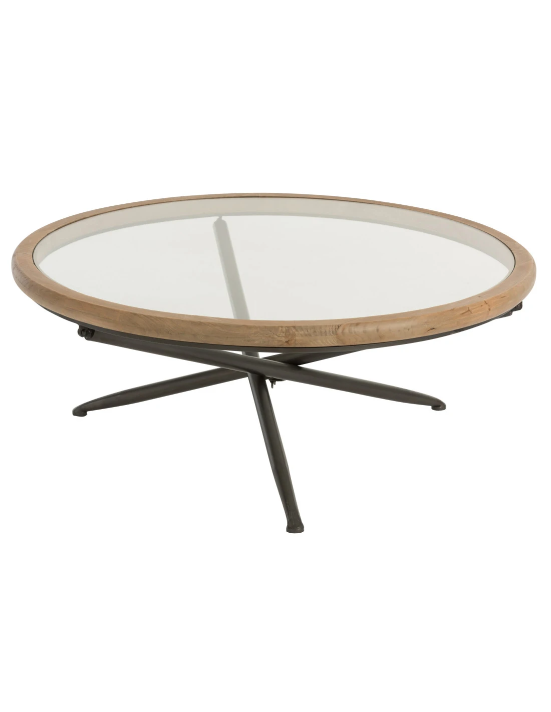 Table ronde en bois/verre marron L. Largeur: 100, Hauteur: 40, Longueur: 100, Poids: 16,9 kg, Collection: Zomer 2020, Couleur: Marron, Composition matérielle: Métal (40%), verre (30%), bois de sapin (30%), Poids maximal de l’assise: 15, Montage requis: Oui.