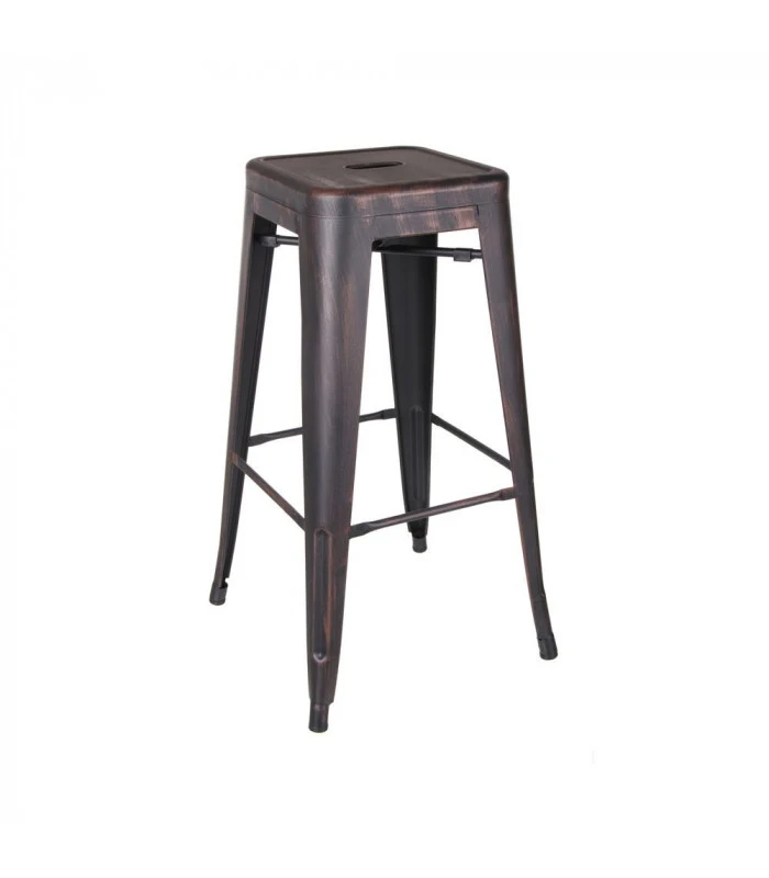 Tabouret Snacking / Plan de Travail en métal patine noir or vieilli.