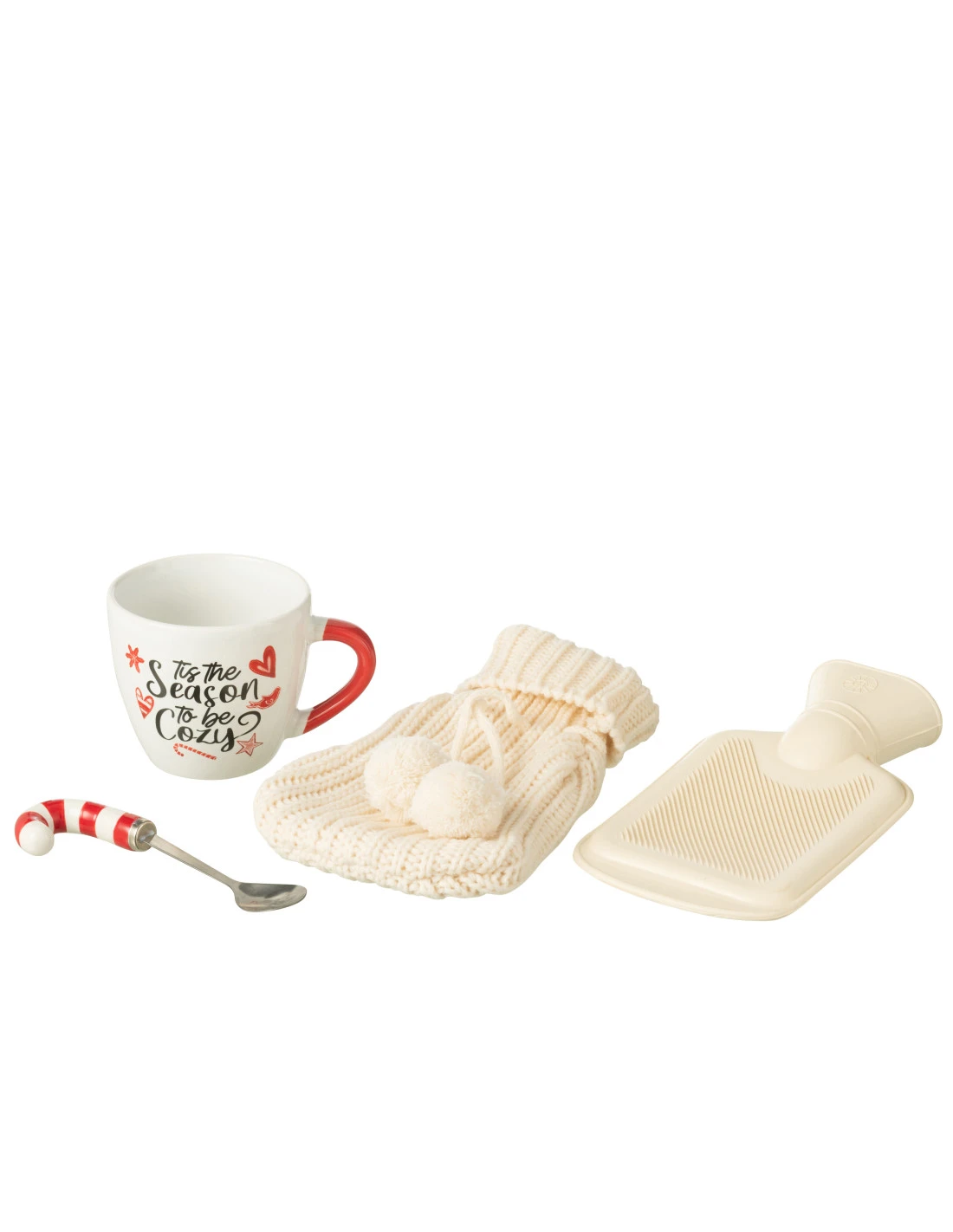 Tasse + cuillère + bouteille d’eau chaude dans une boîte cadeau en céramique rouge.