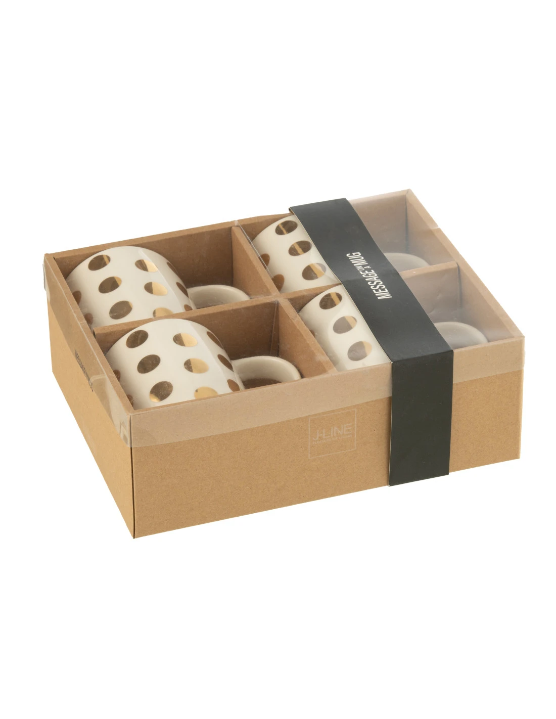 Tasse ronde en porcelaine blanche / dorée. Largeur: 8,5 cm. Hauteur: 8 cm. Longueur: 13 cm. Poids: 0,28 kg. Collection Hiver 2022. Couleur blanche. Composition en céramique (100%).