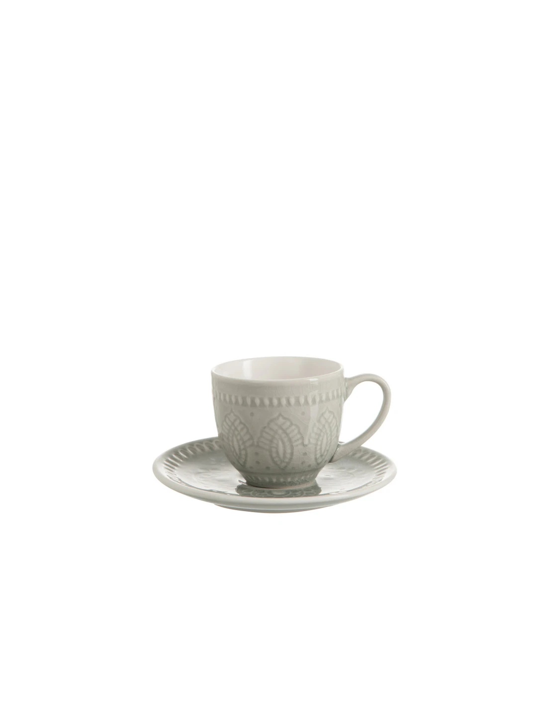 Tasse + dessous de verre Boho en céramique grise. Largeur: 15, Hauteur: 8,5, Longueur: 15, Poids: 0,46 kg. Collection: Zomer 2018. Couleur: Gris/greige. Composition: Céramique (100%).