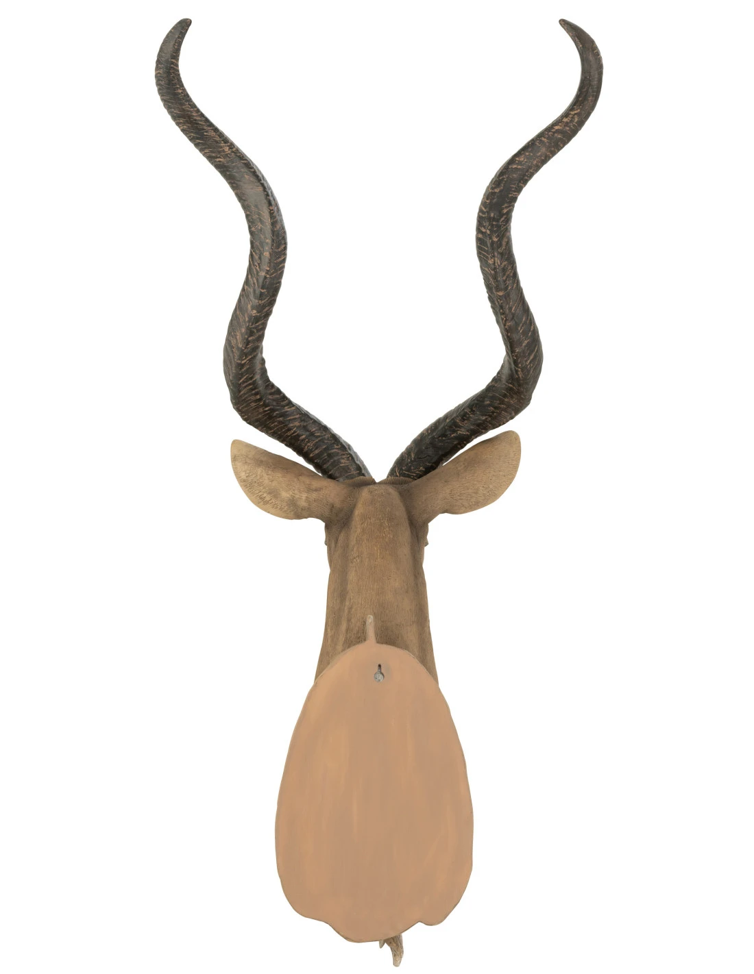 Tête d’antilope en poly brun. Largeur: 47, Hauteur: 85, Longueur: 50, Poids: 3,53 kg, Collection: Hiver 2022, Couleur: Marron, Composition: Polyrésine (45%), poudre de chaux (55%).