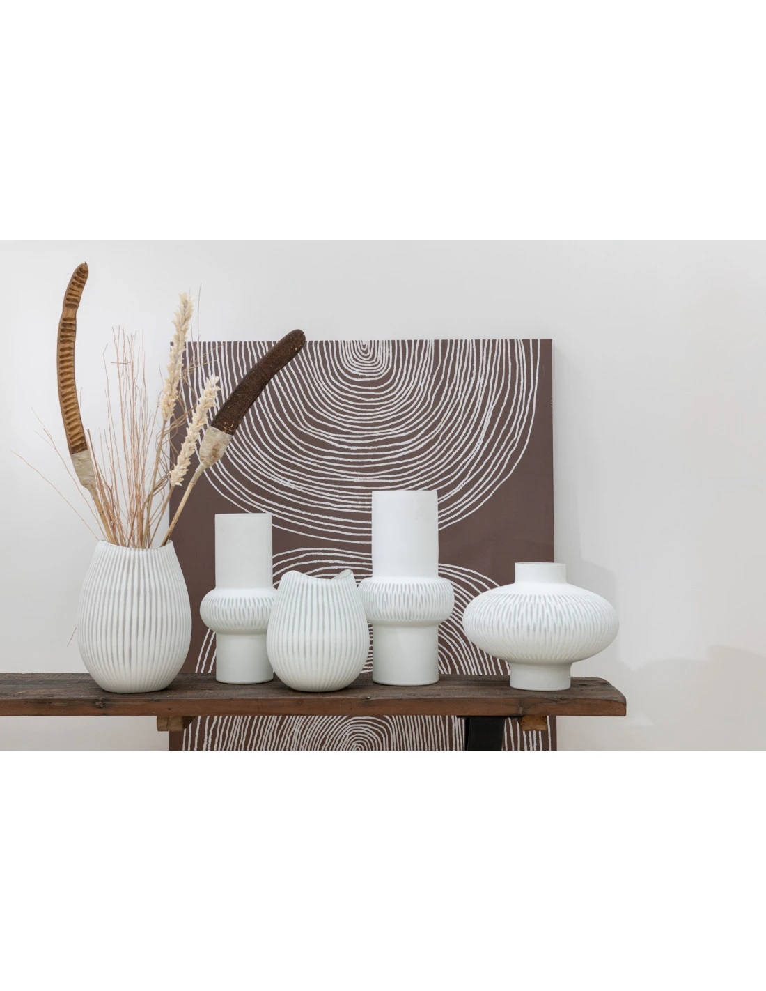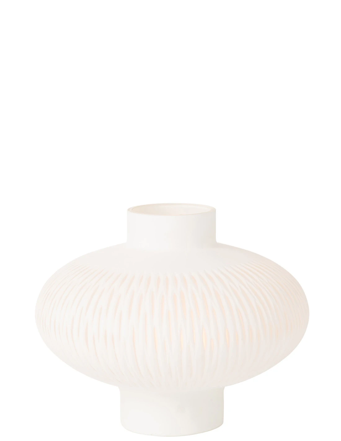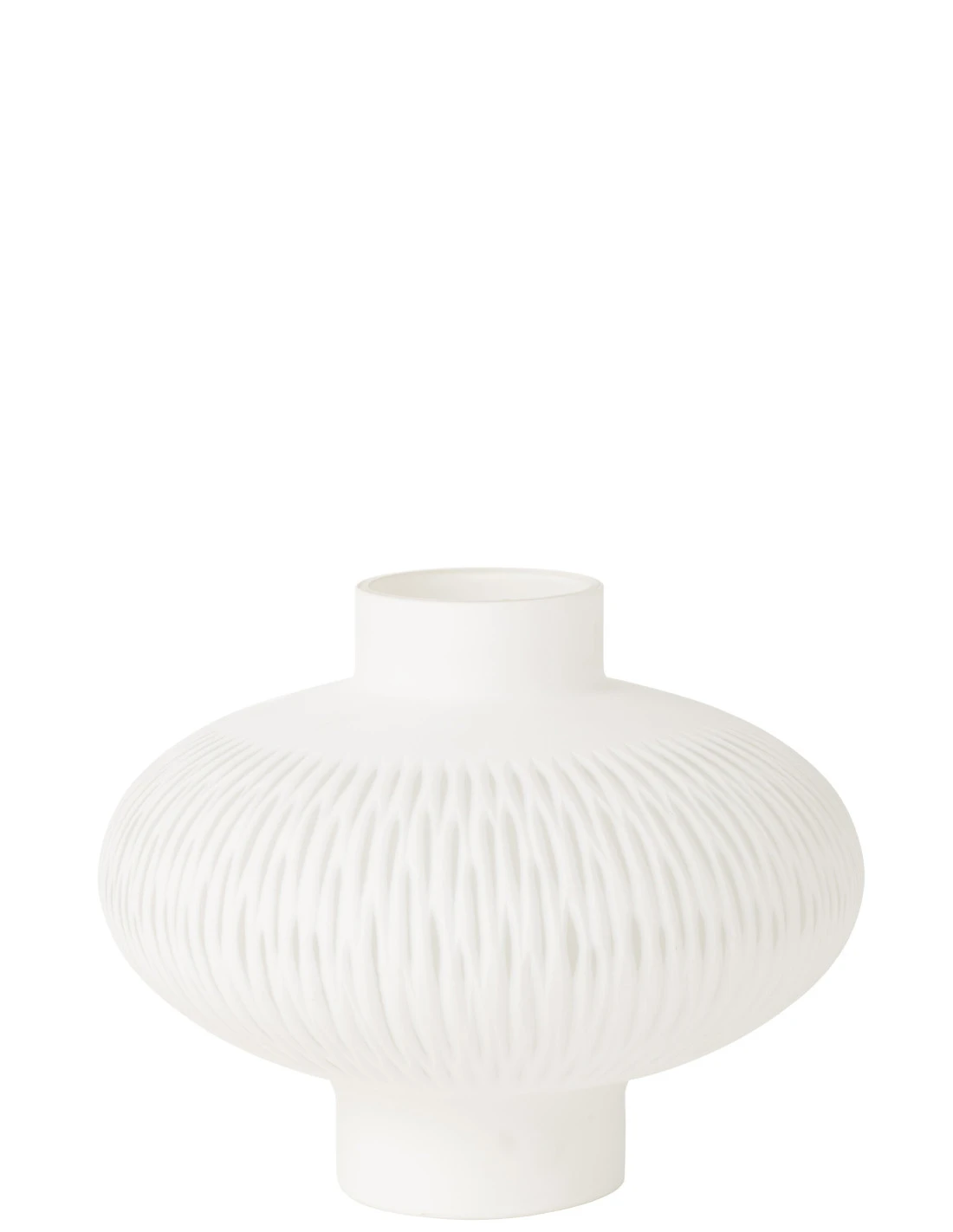 Vase Rayure Boule Basse Verre Blanc. Largeur 31.5, Hauteur 24.5, Longueur 31.5, Poids 2.5 kg, Collection Zomer 2023, Couleur Blanc, Composition Matériau Verre (100%).
