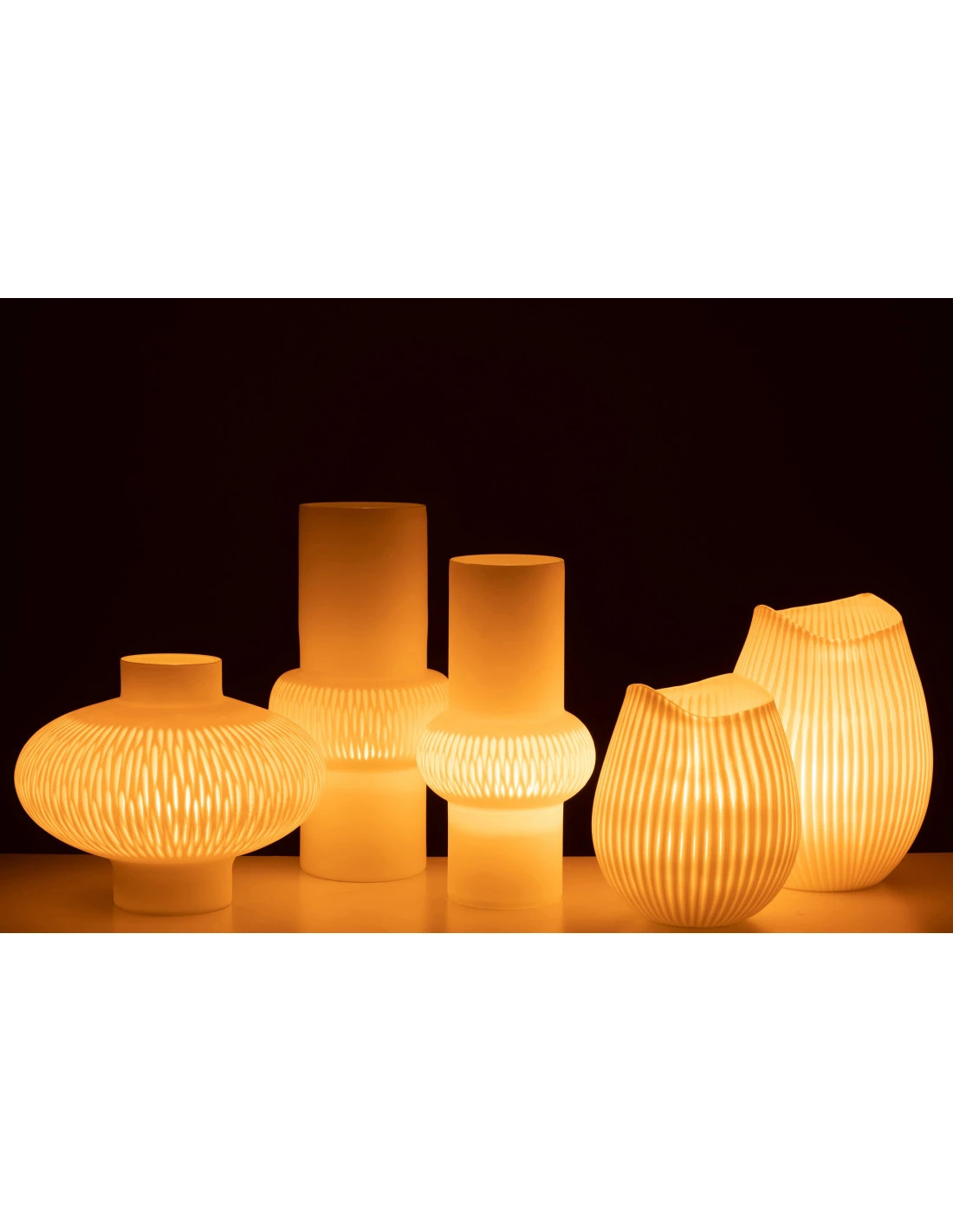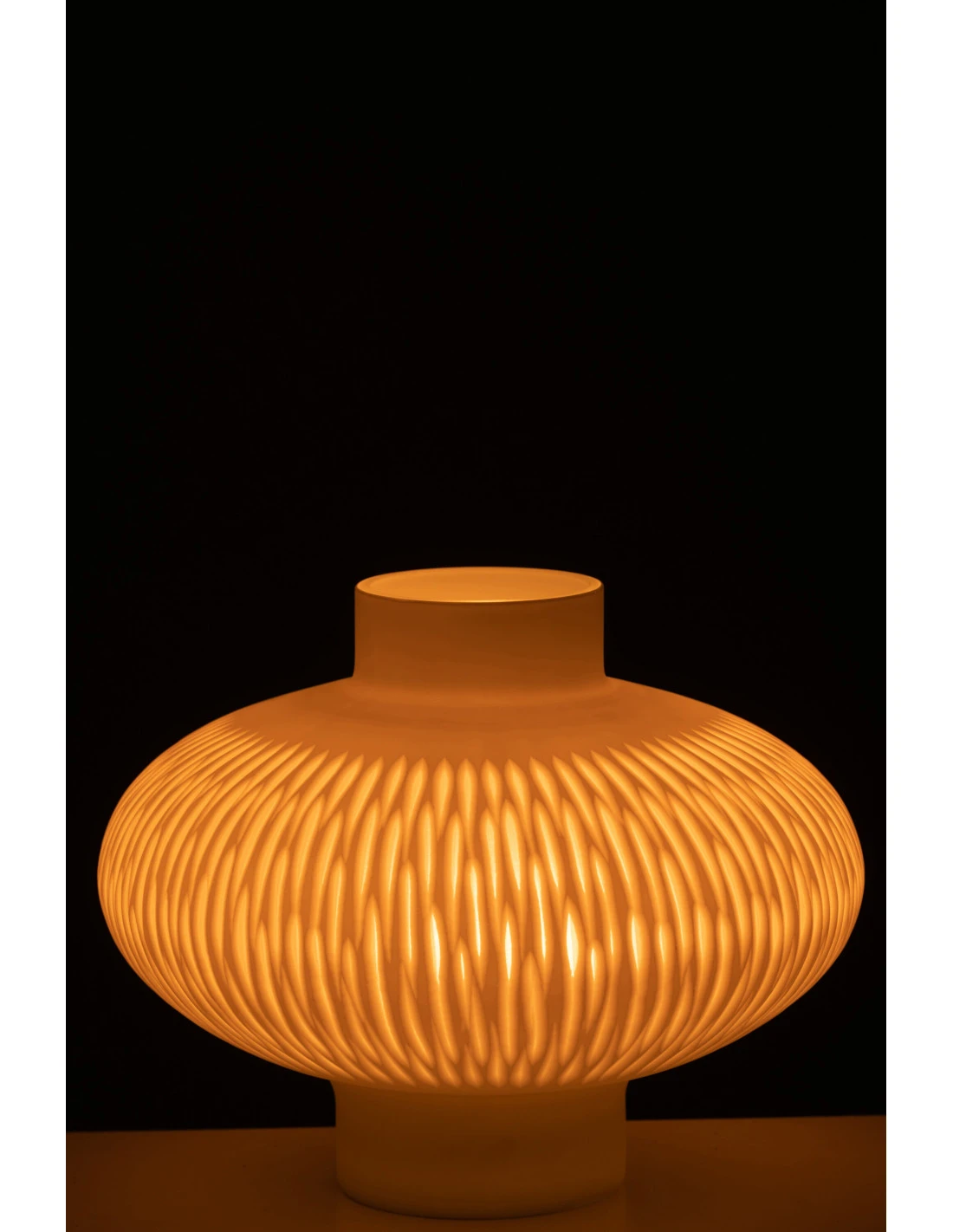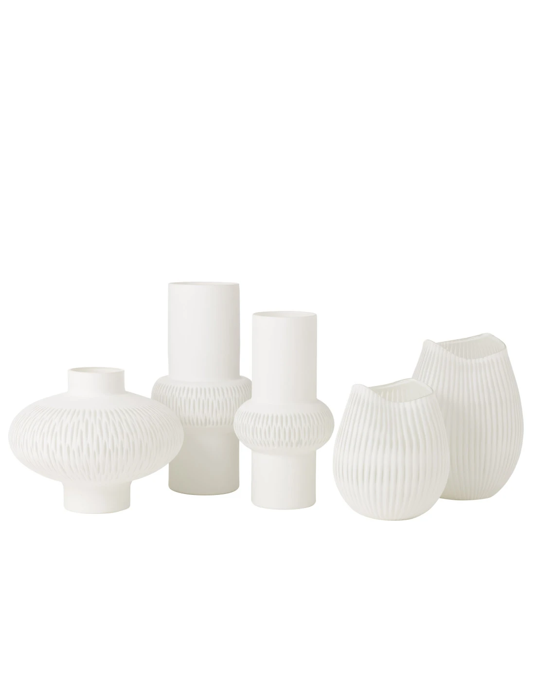 Vase Rayure Boule Basse Verre Blanc. Largeur 31.5, Hauteur 24.5, Longueur 31.5, Poids 2.5 kg, Collection Zomer 2023, Couleur Blanc, Composition Matériau Verre (100%).