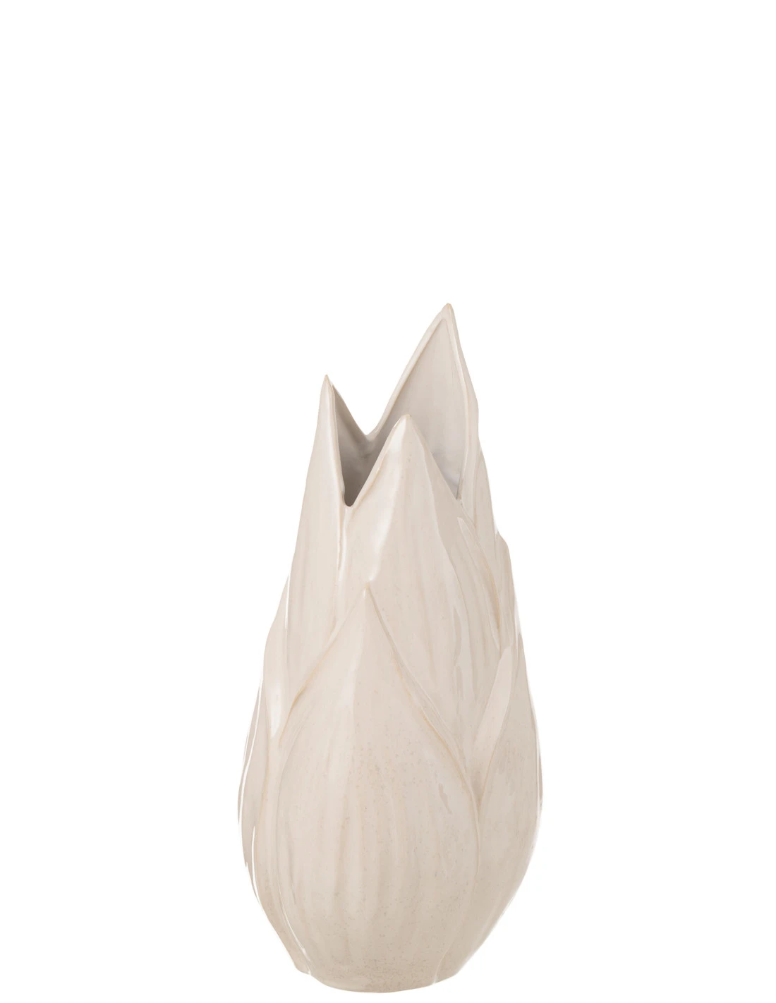 Vase Ibiza en céramique brillante beige de taille moyenne. Largeur: 19,5 cm, Hauteur: 44,5 cm, Longueur: 19,5 cm, Poids: 2,26 kg. Collection Zomer 2022. Couleur blanche avec couleur beige. Composition en glaçure (5%) et argile (95%).