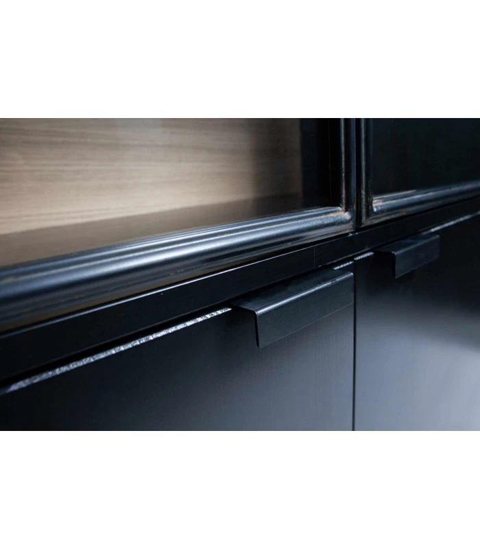 Le fond de l’armoire a 2 portes avec des poignées en métal noir derrière lesquelles se trouve une étagère. Les hauteurs de ces pièces sont de 28 cm.